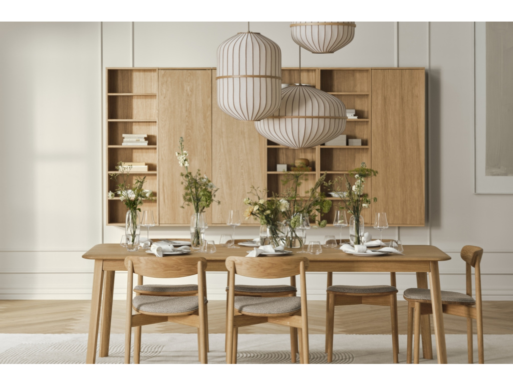 Kolekce světel Lucén od značky Bolia je dokonalým spojením tradičního kouzla a moderního designu. Ať už si vyberete stolní lampu, závěsná světla nebo stojací lampu, každé světlo v této kolekci přinese do vašeho interiéru jemné a harmonické osvětlení. Každý kus je vyroben s důrazem na detail, přičemž světlá či tmavá dubová dýha v kombinaci s textilním stínidlem vytváří příjemně rozptýlené světlo a dodá prostoru útulnou, klidnou atmosféru. Design této kolekce pochází z italského studia Ferriani Sbolgi, které je známé pro své čisté linie a minimalistické přístupy k designu. Světla jsou vyráběna renomovanou dánskou společností MADE SPECIFIC, která se již více než deset let specializuje na tvorbu designových osvětlení. Tato kolekce je nejen designovým skvostem, ale i projevem zodpovědného přístupu k přírodě, díky FSC™-certifikovaným materiálům a ekologické výrobě. Přidejte do svého domova jedinečný kousek, který spojí krásu, funkčnost a udržitelnost v jednom.
