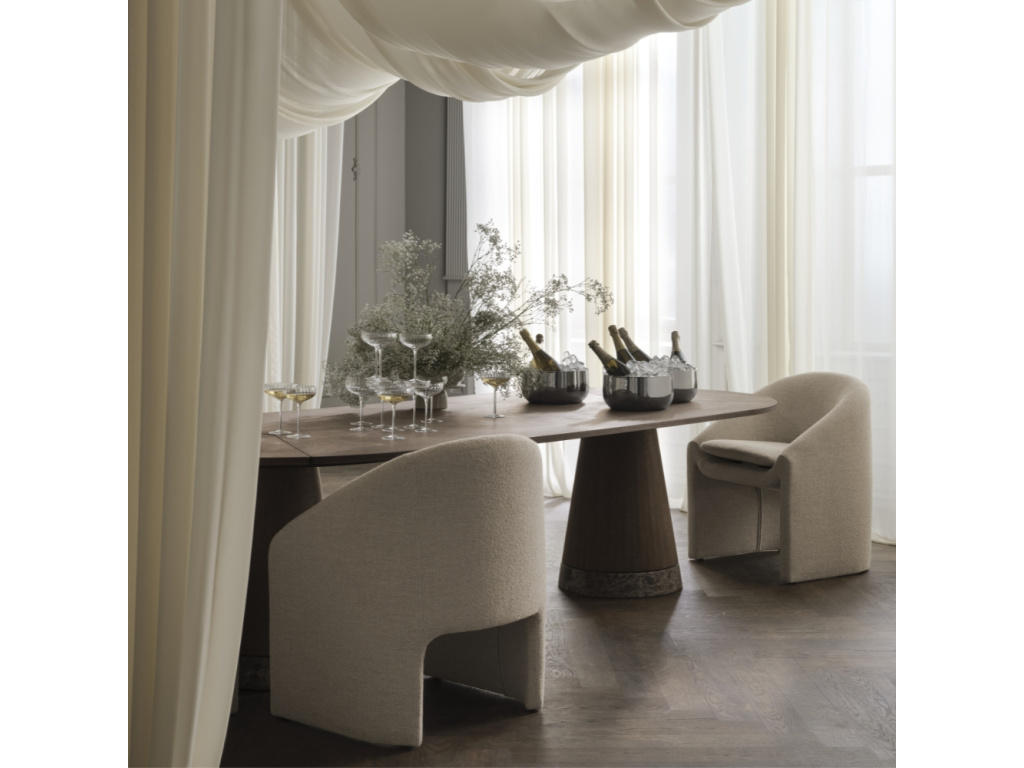 Jídelní židle Mielo od značky Bolia je designovým kouskem, který si vás získá svou elegancí i pohodlím. Za jejím designem stojí Charlotte Høncke, známá pro schopnost spojovat estetiku a funkčnost do jednoho harmonického celku. Její organické linie a sochařská silueta působí elegantně a nadčasově, zatímco prostorný tvar vás přímo zve k pohodlnému posezení. Čalounění z exkluzivní bouclé látky Adria okouzlí svou jemností a hebkou, nepravidelně tkanou strukturou. Díky dvoubarevnému efektu působí luxusně a elegantně, přitom zůstává příjemně útulné a hřejivé. Židle je vyrobena s důrazem na tradiční evropské řemeslo a kvalitní zpracování, takže vám bude dělat radost po mnoho let.