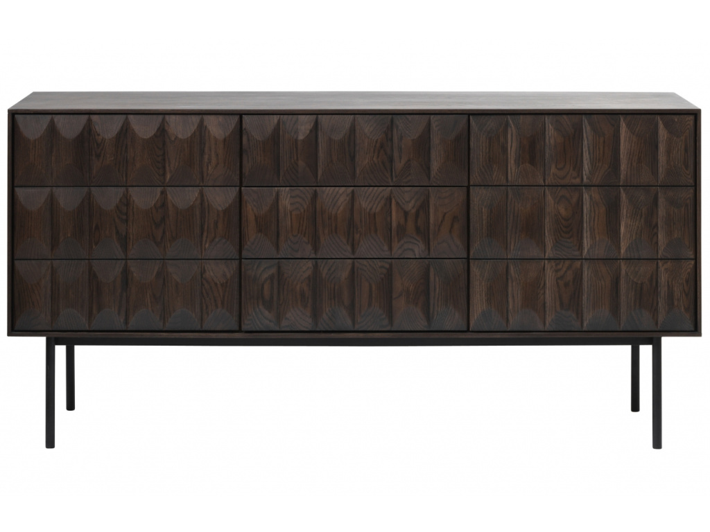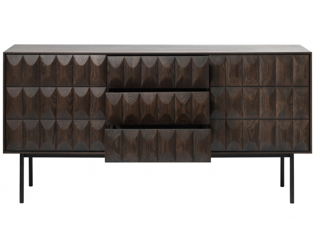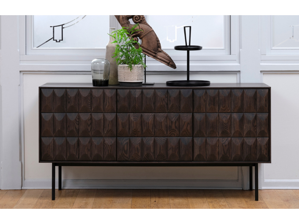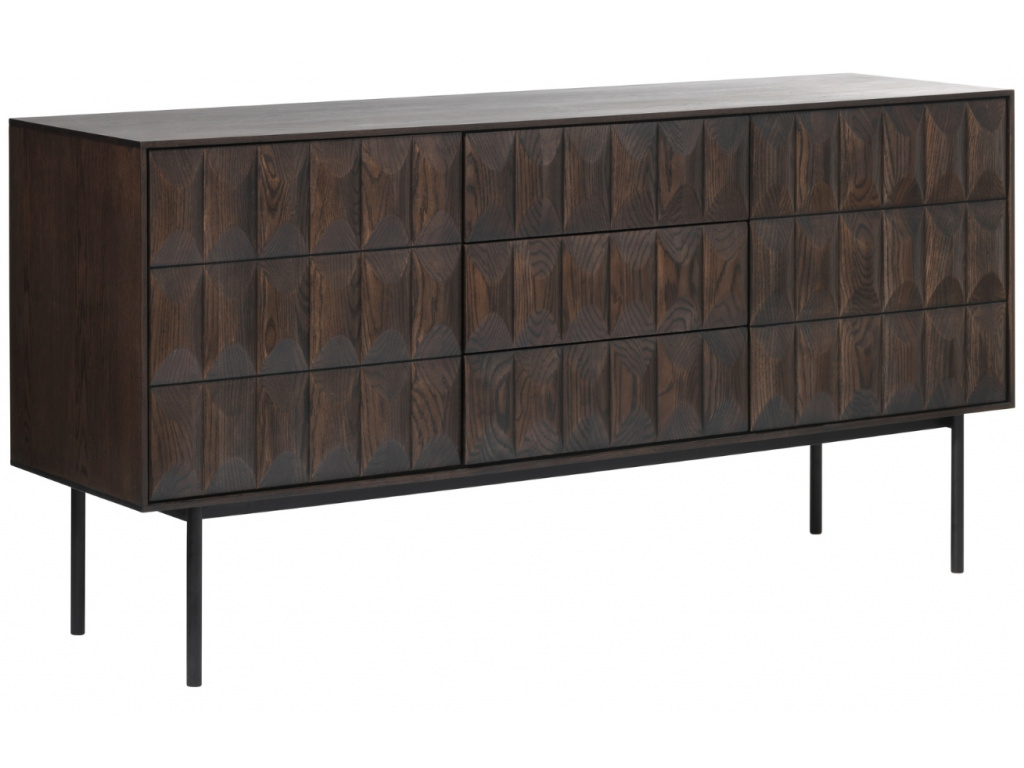 Komoda Latina od značky Unique Furniture nabízí prostorné uložiště v podobě tří zásuvek a čtyř polic, které zaujmou jedinečným vzorováním s reliéfním charakterem. Vrchní část komody je vyrobena z tmavě hnědého masivního dubu a dýhy a její elegantní vyšší podnož tvoří lakovaný kov. Pokud hledáte neobyčejný kousek do vašeho interiéru, komoda Latina vás rozhodně nezklame. Navíc pochází z celé série produktů, takže můžete úložné prostory ve vašem interiéru dokonale sladit.