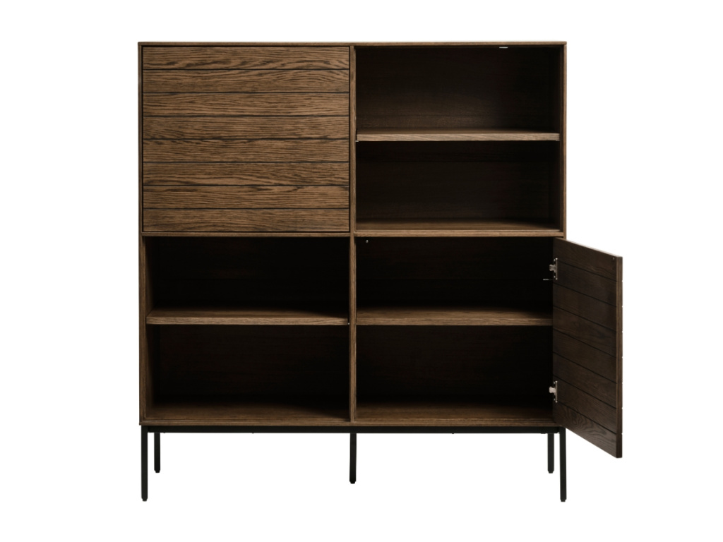 Dostatečný úložný prostor je nezbytností každé domácnosti – doplňte ho komodou Modica od značky Unique Furniture, která je rozdělená do 4 otevřených a 4 uzavřených polic. Komoda je vyrobená z tmavé dubové dýhy v kouřovém provedení a její vysoká podnož z černě lakovaného kovu nejen že dodává produktu na eleganci, ale skvěle se hodí pro domácnosti s robotickým vysavačem. Pokud hledáte neobyčejný kousek do vašeho interiéru, komoda Modica vás rozhodně nezklame. Ve stejnojmenné sérii najdete více designově sladěných produktů, které se budou v interiéru skvěle doplňovat.