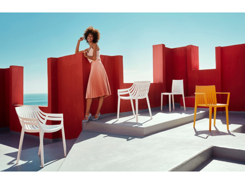 Kolekce zahradního nábytku SPRITZ je navržena designovým studiem Archirivolto Design. To založili v roce 1983 designéři Claudio Dondoli a Marco Pocci jako studio průmyslového plánování, designu a architektury. Série nábytku SPRITZ je inspirována plaňkovými dřevěnými ploty plážových domků v kombinaci s jednoduchou geometrií. Najdete zde stylové barové židle a stolky, pohodlné zahradní pohovky či křesla a dokonce i lehátka, na kterých si odpočinete v horkých letních dnech. Židle je vyrobena ze vstřikovaného polypropylenu, který bez problémů odolá vlivům počasí a zaručí snadnou údržbu. Další praktickou vlastností je stohovatelnost, a to až do počtu 8 kusů. Nábytek SPRITZ bude zkrátka perfektní volbou jak na vaši zahradu, tak na hotelovou či restaurační terasu.