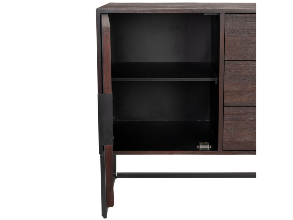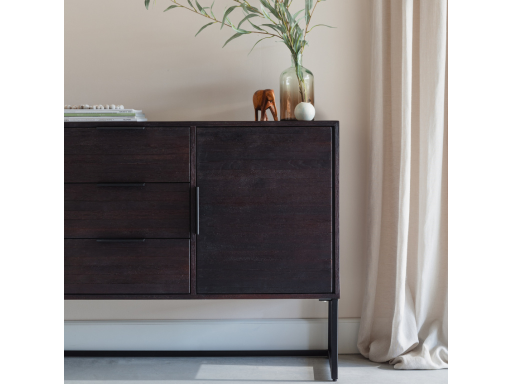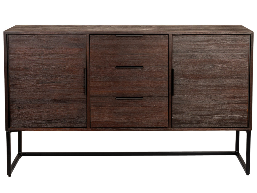 Představujeme vám komodu WEBSTER od značky WLL. Komoda je vyrobena z hnědého teakového dřeva na kovové podnoži. Teakové dřevo se chlubí zejména svojí nápadnou strukturou, dlouhou životností a odolností vůči plísním a škůdcům. O dostatek úložného prostoru se postarají 3 zásuvky a 2 police zakryté dvířky. Komoda se skvěle hodí do ložnice, kde do ní můžete uložit ložní prádlo nebo drobné osobní předměty. Využijete ji ale také v obývacím pokoji, nebo pracovně. Dokonale obohatí industriální, scandi nebo vintage interiéry. Na výběr máme také alternativní velikost komody, kterou můžete využít v setu s touto.