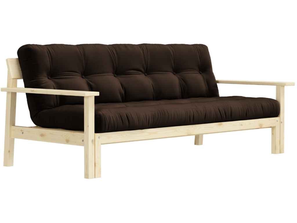Třímístná rozkládací pohovka Unwind značky Karup Design se stane vaším oblíbeným společníkem pro filmové večery. Jedním jednoduchým pohybem se z elegantní pohovky stane prostorné lůžko. Konstrukce z masivního borovicového dřeva s FSC certifikací je doplněna kvalitní 14 cm vysokou futonovou matrací, která v sobě kombinuje recyklovaná vlákna a 4 cm pěnu. Praktickým detailem této pohovky jsou pohodlné širší loketní opěrky. Unwind se skvěle hodí do interiérů laděných ve stylu scandi. Představuje skvělé řešení zejména pro menší interiéry, do kterých přinese další místo na spaní. Vybrat si můžete z široké škály barev.