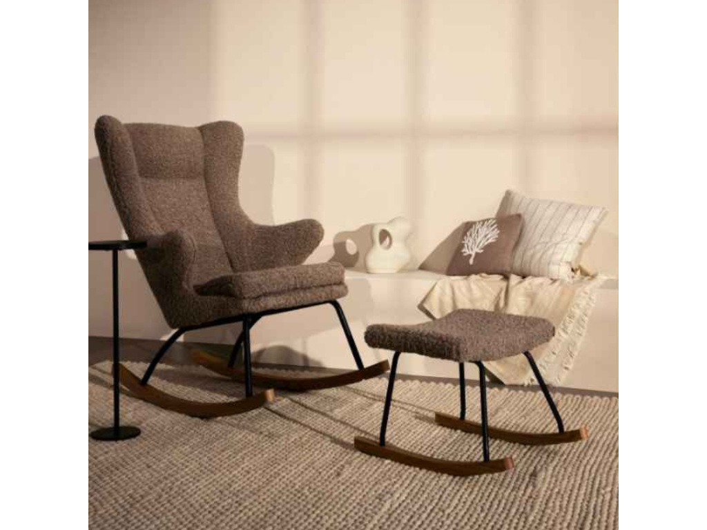 Tmavě hnědé houpací křeslo Quax De Luxe potěší každou maminku a vytvoří dokonalé místo na krmení i uspávání vašeho miminka. Příjemné čalounění a březové masivní ližiny je krásná kombinace do skandinávských i minimalistických interiérů. Černě lakovaná kovová podnož dodává celému křeslu elegantní a vzdušný nádech.