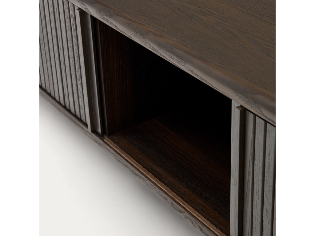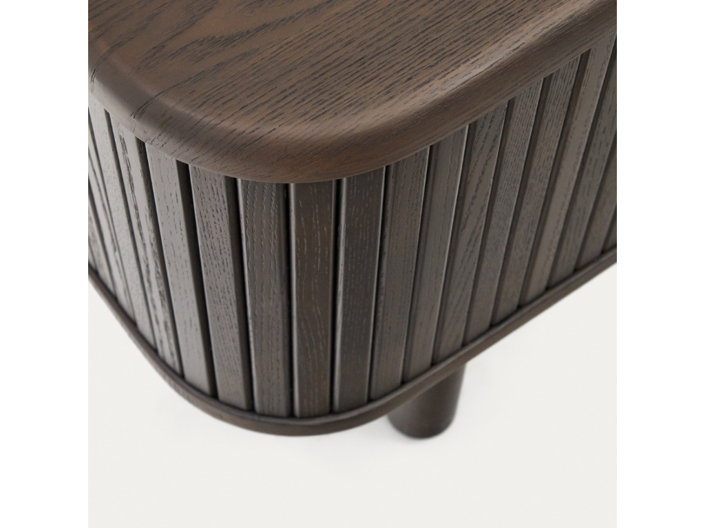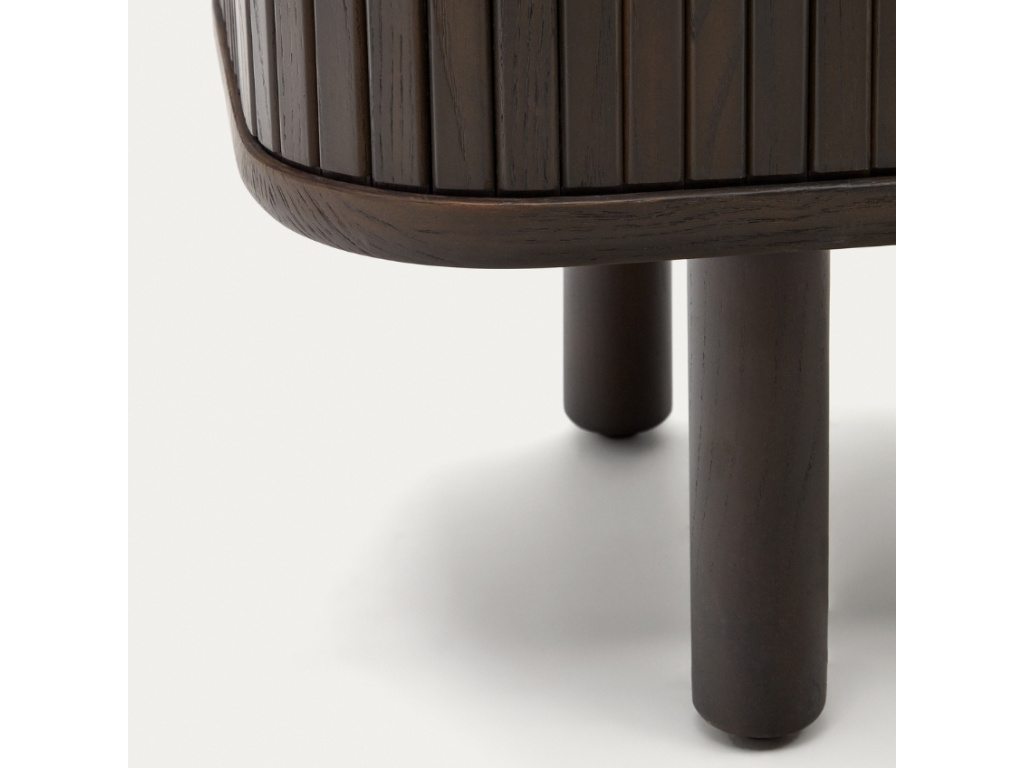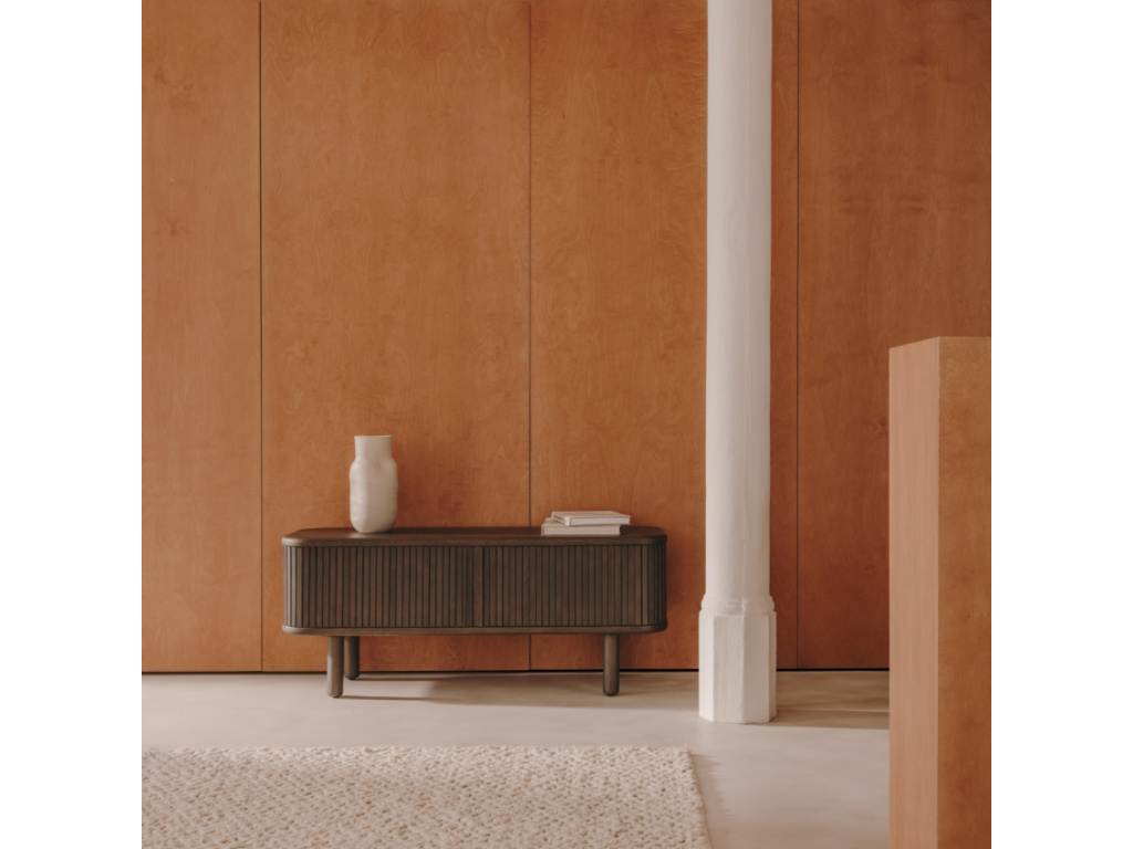 Chystáte se obnovit zařízení vašeho obývacího pokoje? Menší verze TV stolku Mailen z jasanové dýhy s tmavou povrchovou úpravou nabízí úložný prostor v podobě 2 polic, které jsou skryty za lamelovými posuvnými dvířky. Díky vyšší podnoži si ho navíc můžou pořídit i domácnosti s robotickým vysavačem. Mailen pochází ze stejnojmenné kolekce nábytku, vytvořené týmem Kave Home, ve které najdete další kousky, které vám umožní dokonale sladit váš interiér. Navíc se řadí do série kolekcí s názvem ZEN BALANCE, která si zakládá na nadčasové eleganci v duchu minimalismu a dokonalé harmonii s přírodou. Mailen tak můžete doplnit i o dekorace a doplňky z této série kolekcí a vyšperkovat tak váš domov k dokonalosti.