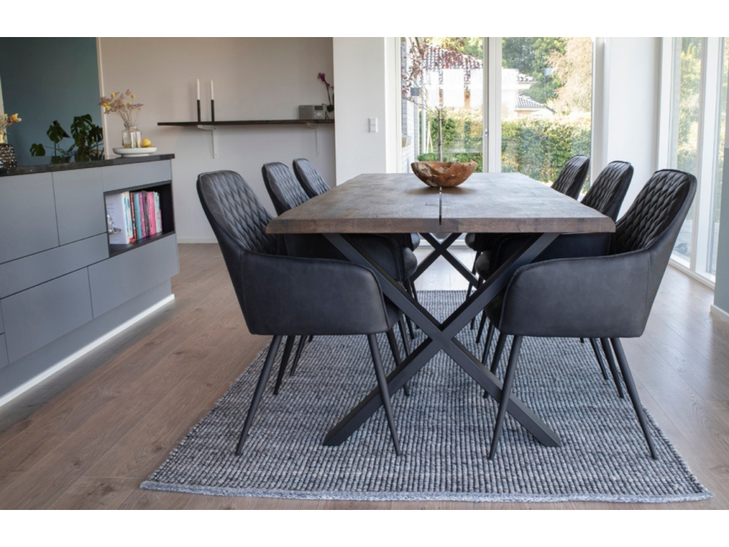 Jídelní stůl Nordic Living Tolon je charakteristický svým rustikálním designem z dubového dřeva, které dodává stolu jedinečný styl. Křížená černě lakovaná kovová podnož dotváří celkový design stolu a dodává mu osobitost a styl. Dále mezi jeho vlastnosti patří skvělá stabilita. Hodí se spíše do klasických a rustikálně laděných interiérů. Skvěle zapadne do jídelny v pohodlí domova, ale také do komerčních prostorů.