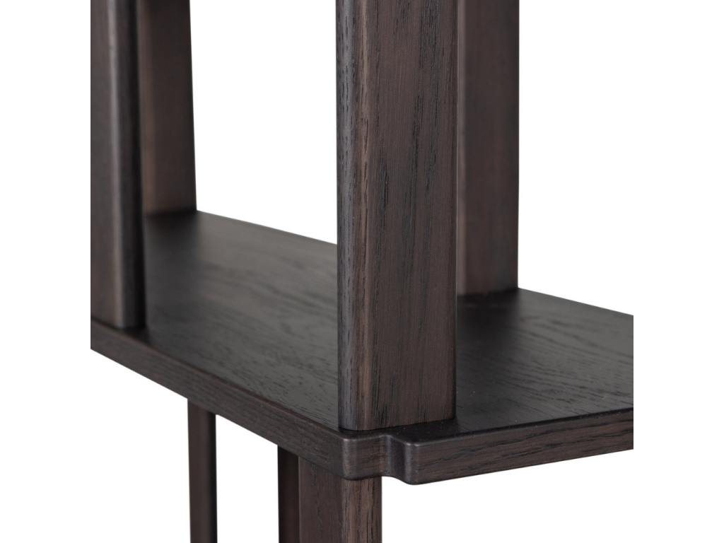 Funguje jako knihovna, regál i chytrá stěna, která rozčlení interiér. A navíc to všechno umí dělat s elegancí. Riss je regál z masivního dubového dřeva, který působí lehce, vzdušně a přirozeně zapadne takřka do každého interiéru. Ať už do něj dáte knihy, pokojovky, dekorativní prvky, nebo úložné koše, vždycky bude vypadat upraveně a vdechne vašemu domovu pořádek. Dub v tmavém odstínu dodá prostoru teplo a charakter, zatímco pevná konstrukce zaručí, že Riss zvládne každodenní provoz. Taky to máte před očima?