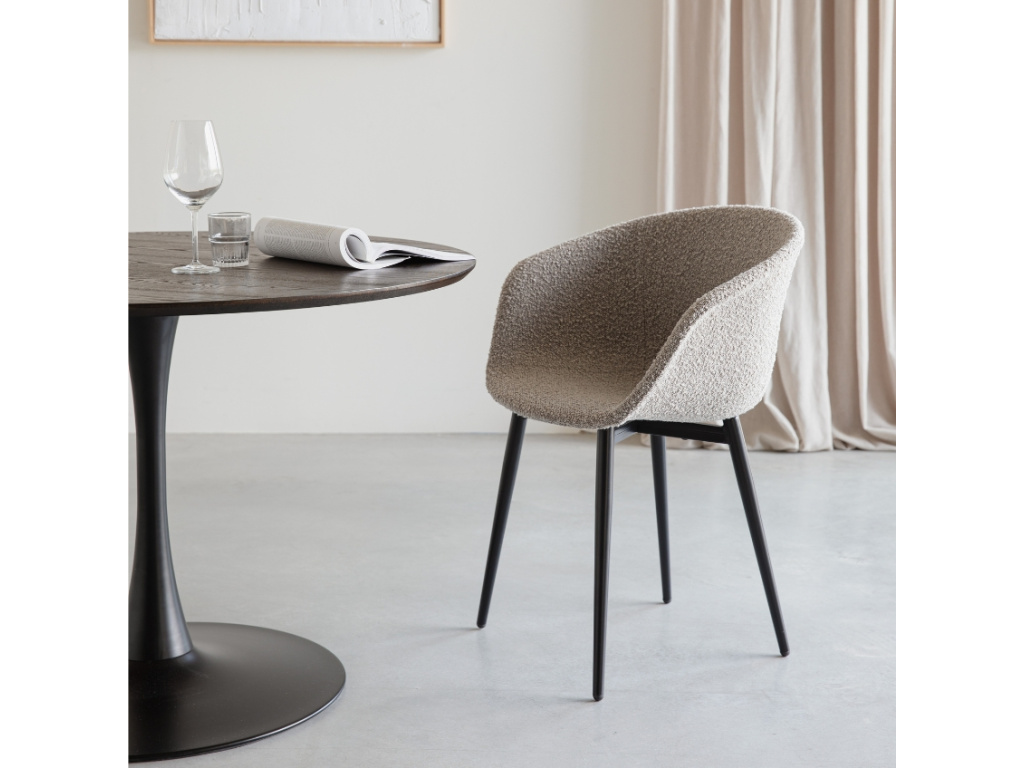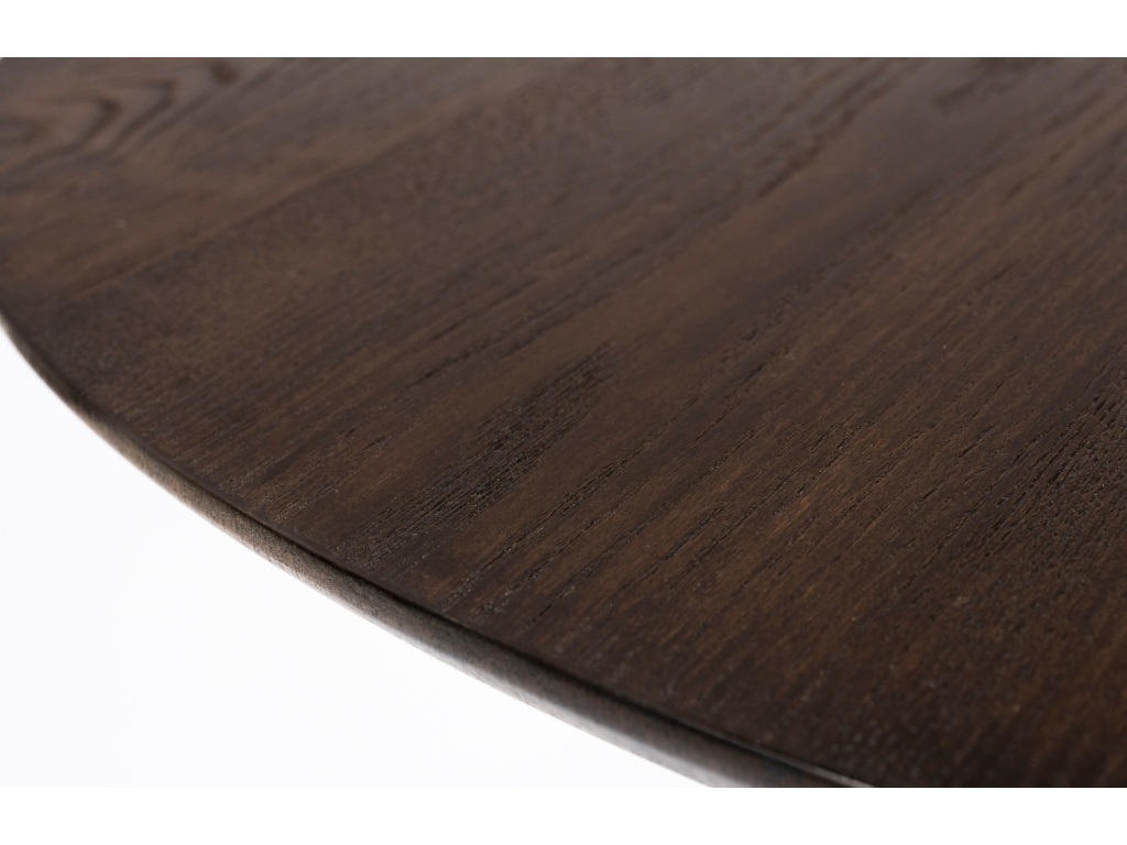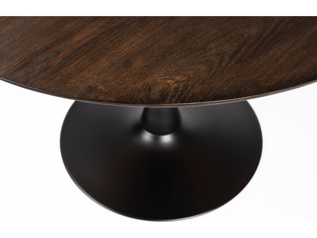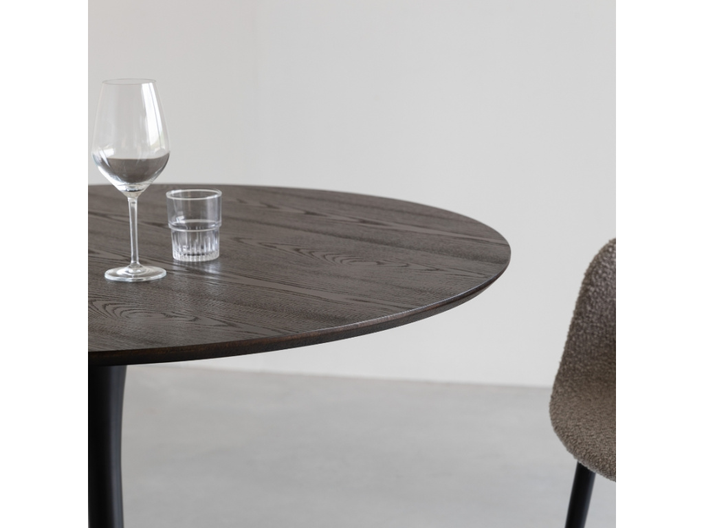Kulatý jídelní stůl RAKU od značky White Label Living vás nadchne krásným dekorem své desky. Ta je vyrobena z dýhovaného MDF, zabarvena do tajemných tmavě hnědých tónů. K dřevěnému materiálu příjemně kontrastuje kovová podnož s kruhovou základnou, která stolu dodává patřičnou eleganci. Stůl nabízí čtyři místa k sezení a stane se oblíbeným útočištěm, kde můžete trávit oblíbené chvilky s rodinou či přáteli.