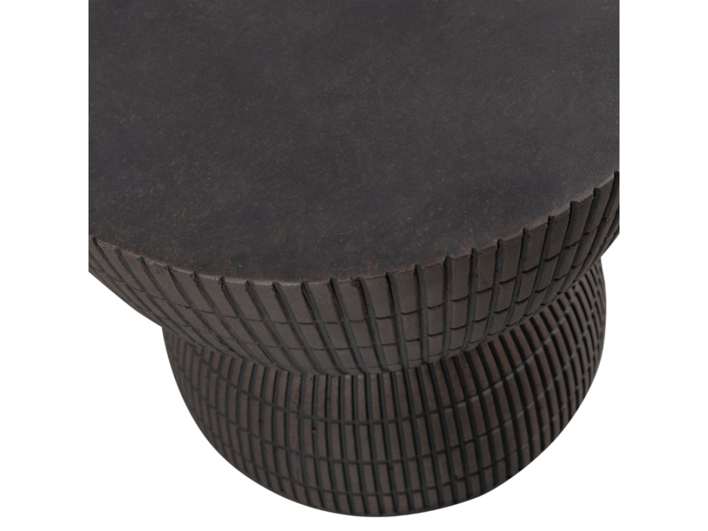 Konferenční stolek Samy s betonovým vzhledem je vyroben z vláknité hlíny, takže je pozoruhodně lehký. Materiál Fiberclay je směs skelných vláken a jílu, díky čemuž je předmět velmi pevný. Jedná se o bytelný doplněk s oblými tvary, který v kombinaci s reliéfem přinese do vašeho interiéru útulnou atmosféru. Díky své neutrální barvě a minimalistickému vzhledu se hodí téměř kamkoliv a bude se dobře kombinovat s dalšími doplňky z přírodních materiálů. Stolek je k dispozici také s průměrem desky 37 cm – společně budou v interiéru působit skvěle.