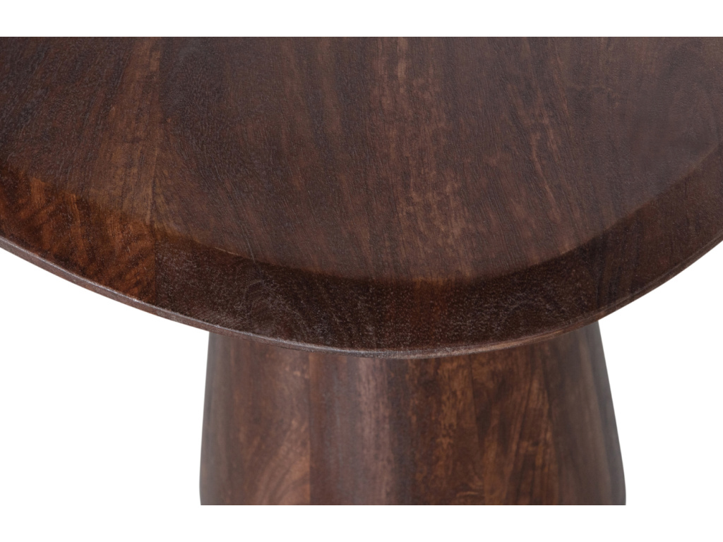 Hledáte skutečně designový kousek do vašeho domova? Skvělým tipem je tento tmavě hnědý odkládací stolek z řady Poselt v odstínu ořechu. Hlavní předností je atypický, nepravidelný tvar a materiál – pevné mangové dřevo. Mangové dřevo představuje jistotu vysoké životnosti a odolnosti vůči poškození. Deska s příjemně zkoseným okrajem a kuželovitou podnoží je vhodným adeptem do moderního, čistého interiéru. Velmi se hodí k přírodně laděným prvkům. Řada Poselt nabízí tři různé velikosti a dvě barevná provedení.