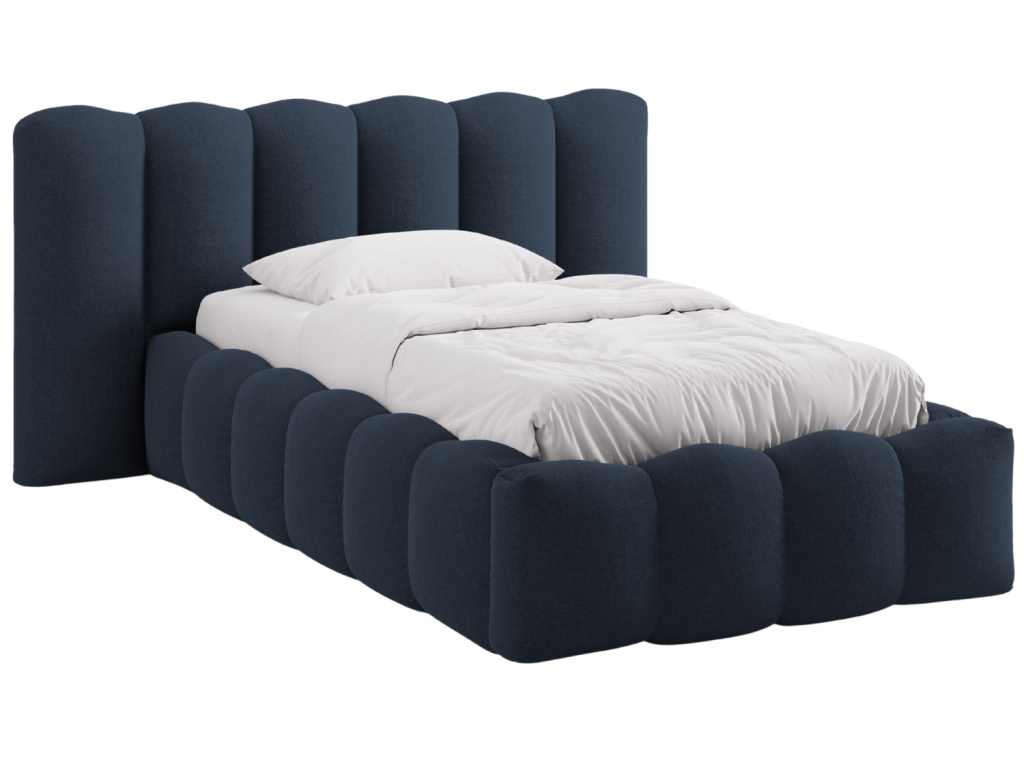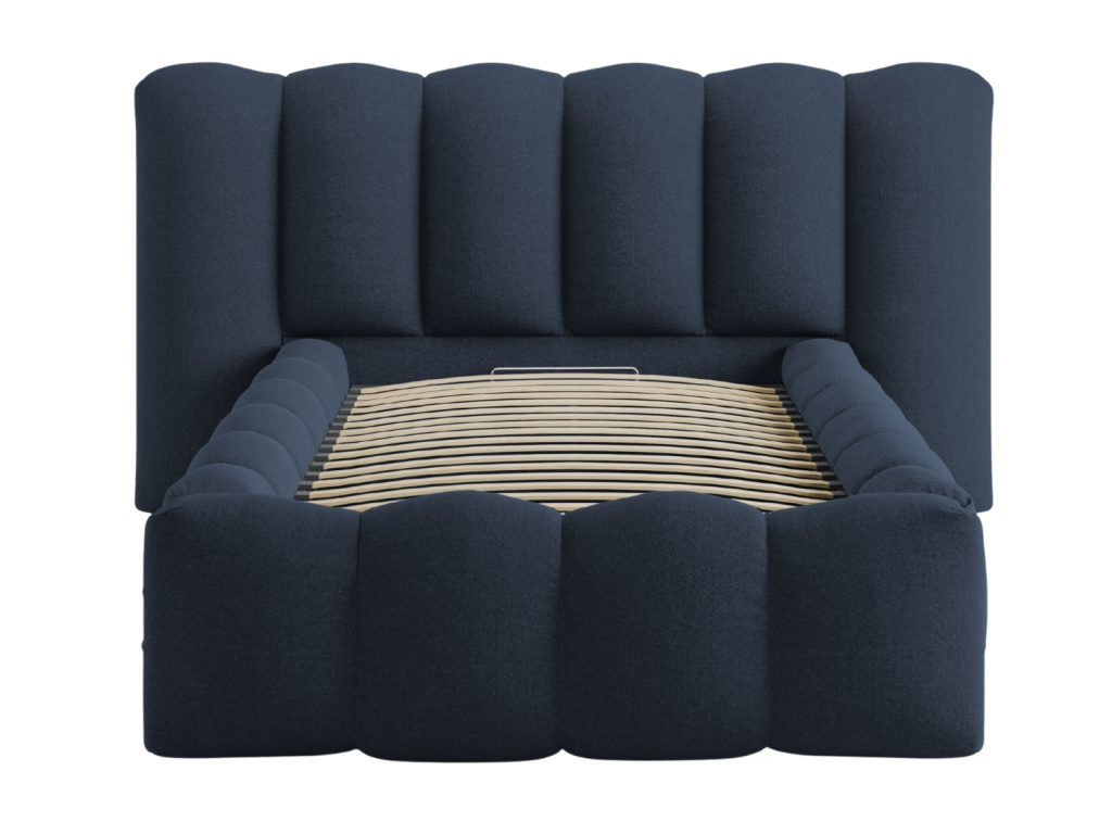 Tmavě modrá jednolůžková postel Lupine 90 x 200 cm s úložným prostorem