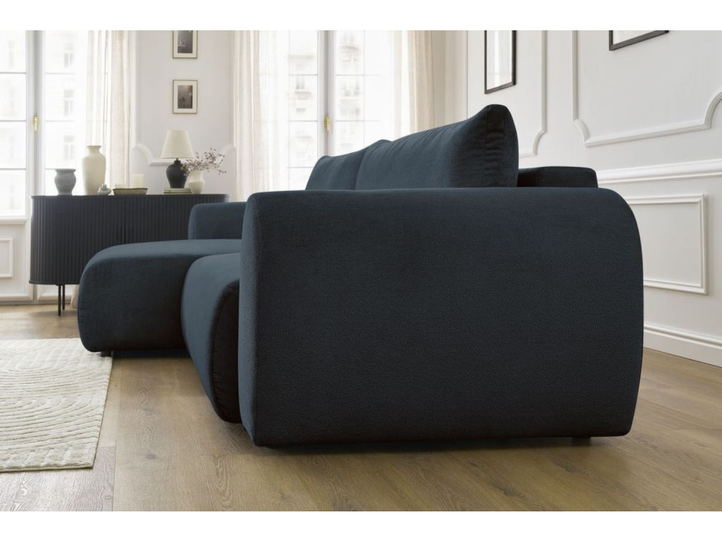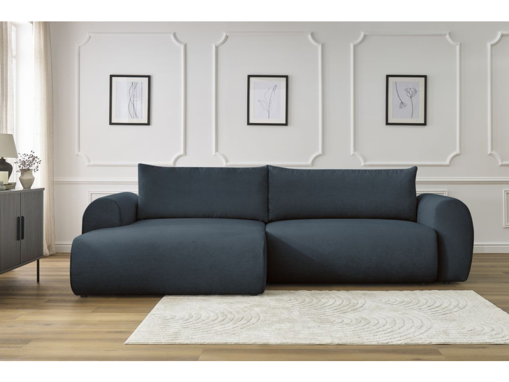 Vyberu siTmavě modrá rozkládací pohovka Lucien 314 cm, levá