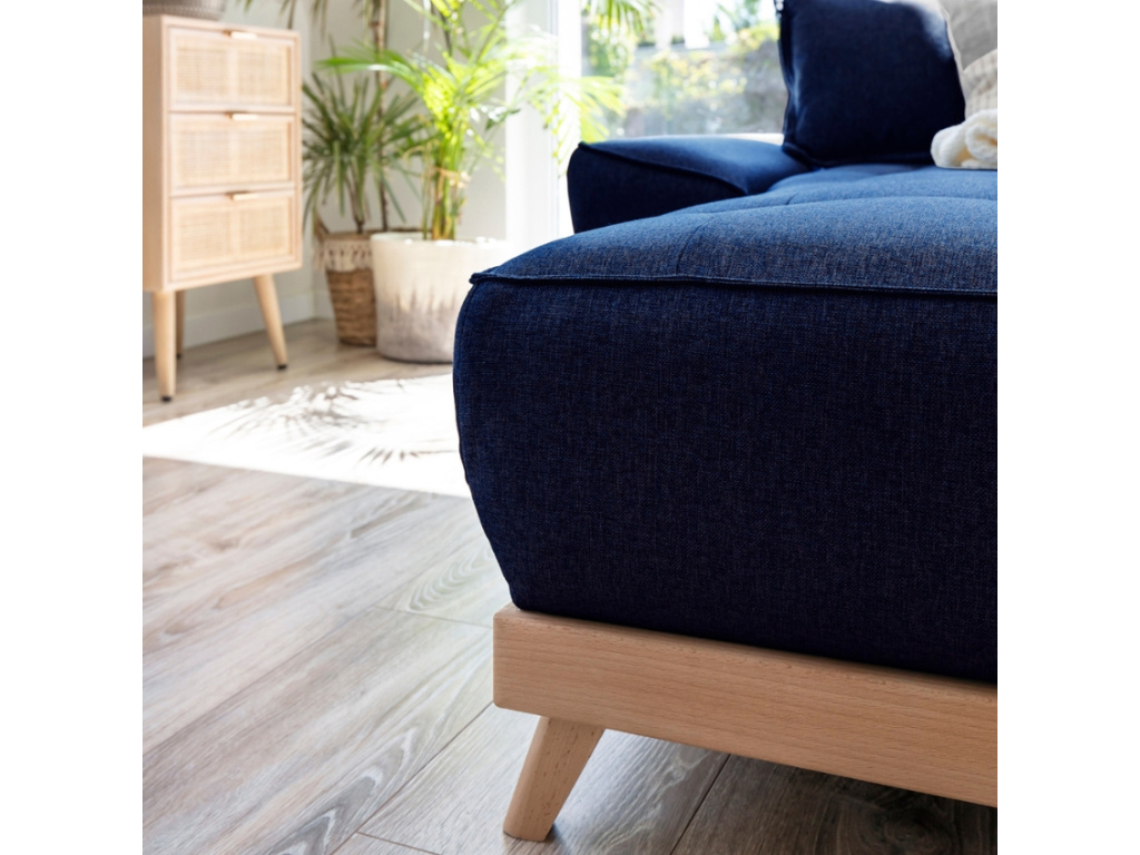 Rohová rozkládací pohovka Dazzling Daisy od značky Miuform snoubí moderní design a funkčnost se skandinávským nádechem. Dazzling Daisy je ideální pohovkou především do interiérů, kde potřebujete uspořit místo na sezení i spaní. V pár jednoduchých krocích získáte z pohovky pohodlné a prostorné lůžko na spaní pro návštěvu a nechybí ani úložný prostor pro veškeré lůžkoviny a polštářky. Podnož z borovicového dřeva v přírodní barvě dodává nábytku vzdušný dojem. Příjemná látka zajistí pohodlí a elegantním doplňkem k pohovce jsou dva dekorativní polštáře. Vyberte si svou ideální pohovku z řady Dazzling Daisy, která nabízí několik barevných provedení.