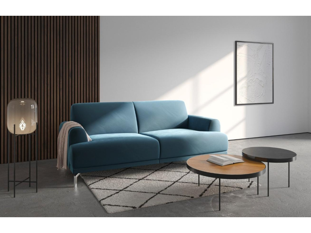 Designová pohovka MESONICA Puzo rozhodně zaujme na první pohled. Robustně vyhlížející pohovka je čalouněná velmi kvalitní a příjemnou sametovou látkou v krásném tmavě modrém odstínu a opatřená stabilní kovovou podnoží. Tato pohovka elegantních linií a působivého provedení vnese do vašeho domova jedinečný styl.
