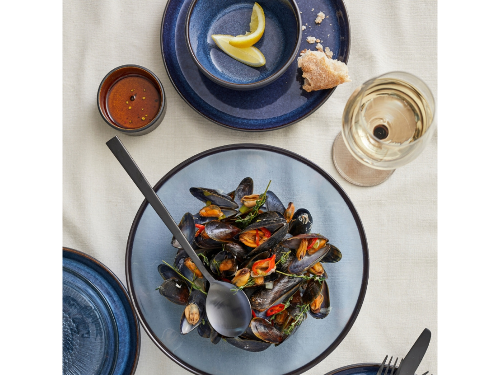 Malá kameninová miska od značky Bitz dokáže i běžné pokrmy pozvednout na vyšší úroveň. Ozdobte miskou z kameniny prostřený stůl a využijte ji například na servírování ovoce, zeleniny, pochutin či menších salátů. Miska se pyšní matnou černou glazurou z vnější strany a lesklou tmavě modrou barvou uvnitř. Doplňte kameninovou řadu nádobí Bitz tímto jedinečným kouskem!
