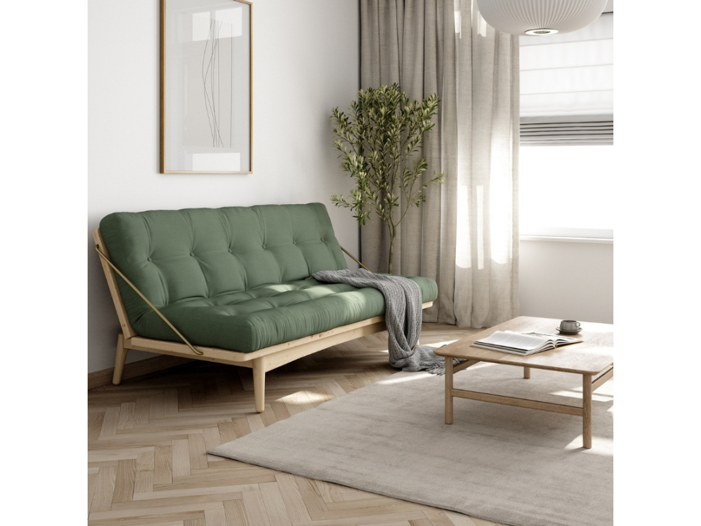 Třímístná rozkládací pohovka Folk značky Karup Design se stane vaším oblíbeným společníkem. Jednoduchým pohybem se elegantní pohovka promění na praktické lůžko. Konstrukce z masivního borovicového dřeva s FSC certifikací je doplněna kvalitní 14 cm vysokou futonovou matrací, která v sobě kombinuje recyklovaná vlákna a 4 cm pěnu. Praktickým detailem této pohovky jsou designové kovové opěrky, které snadno odepnete a vytvoříte tak postel pro dva. Folk se skvěle hodí do skandinávsky laděných domovů. Představuje skvělé řešení především pro menší interiéry, kde oceníte další místo na spaní. Vybrat si můžete z široké škály barev.