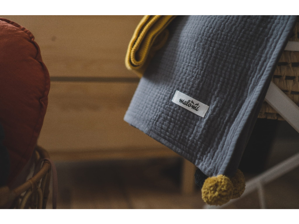 Zavinovací plenka Pompon od Malomi Kids je vyrobena z třívrstvé jemné mušelínové bavlny. Lze ji využít jako dečku při přebalování, nebo když si miminko odříhne po kojení. Do slunečných dnů bude také skvělá jako stínítko na kočárek, nebo do ní můžete jednoduše děťátko zavinout. Rohy plenky zdobí měkoučké látkové bambulky v různých barvách.