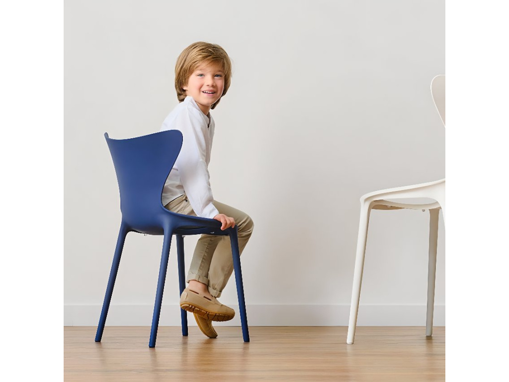 Tmavě modrá plastová dětská jídelní židle LOVE MINI