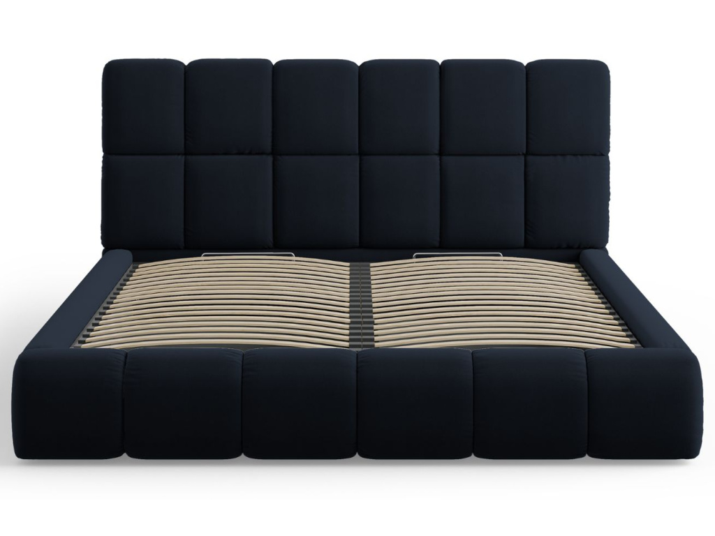 Dvoulůžková postel Bellis vás přenese na pobřeží uklidňující Skandinávie. Měkké čalouněné čelo s geometrickým prošíváním je krásným dekorativním prvkem, který poskytuje pohodlí. Při čtení nebo sledování filmu budete mít kvalitní podpěru pro váš krk nebo záda. Celá konstrukce je čalouněna látkou imitující samet s mírným leskem, která vykazuje vysokou odolnost proti oděru. Nezbytným prvkem lůžka je úložný prostor pod matrací, který vám pomůže efektivně využít prostor a udržet v ložnici pořádek. K lůžku doporučujeme zakoupit matraci od značky Micadoni.