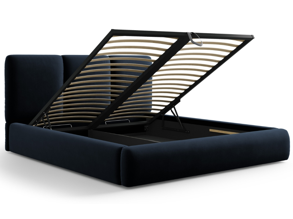 Relaxujte a užívejte si pohodlí ve dvoulůžkové posteli Horizon od značky Windsor & Co. Měkké čelo s elegantním designovým prošíváním zajistí příjemný vzhled postele, a navíc vám poskytne oporu při sledování televize nebo čtení knih a časopisů. Její sametové čalounění v tmavě modrém odstínu je vyrobeno z tkaniny, která je vysoce odolná proti poškození a zabraňuje pronikání tekutin. Tkanina navíc prošla cigaretovým testem, tudíž je odolná proti doutnání a vznícení. Postel je doplněna úložným prostorem pod oběma lůžky, do kterého můžete vkládat vaše ložní prádlo. Horizon je v nabídce v několika barevných provedení a ve třech standardních rozměrech. Díky tomu si můžete vybrat ideální rozměr do vašeho interiéru.