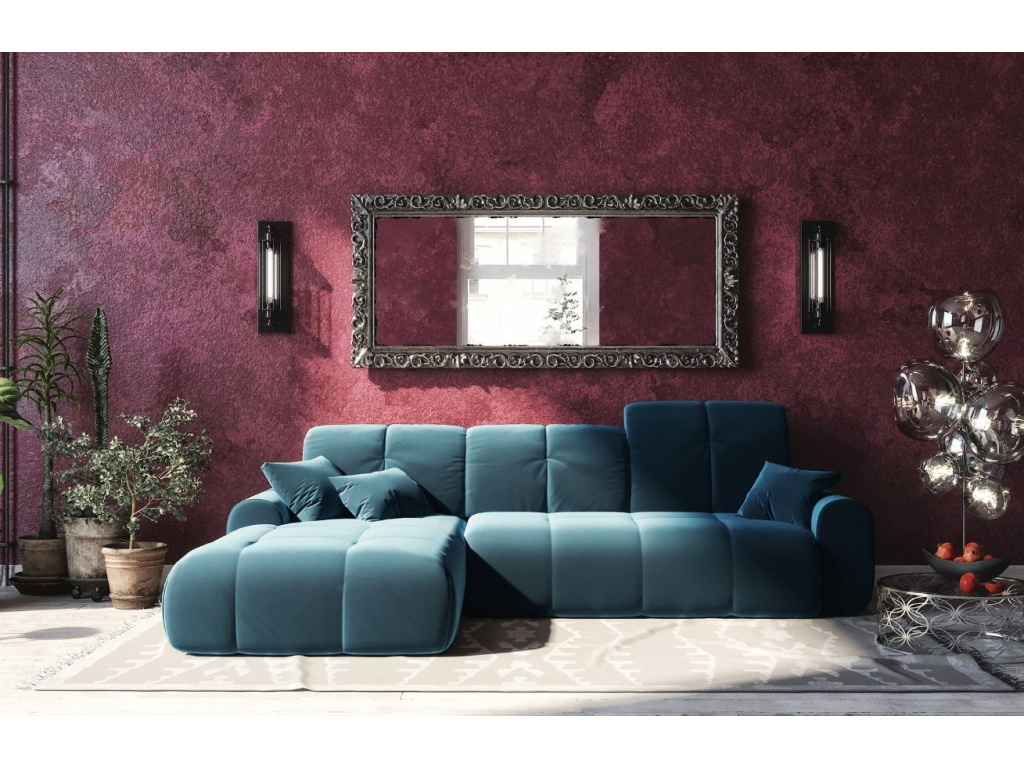 Více infoTmavě modrá sametová rohová pohovka DEVICHY Tous, levá 290 cm