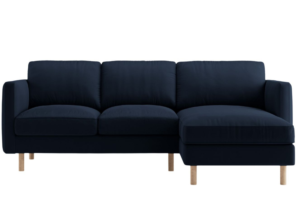 Podívám seTmavě modrá sametová rohová pohovka Eden 223 cm, pravá