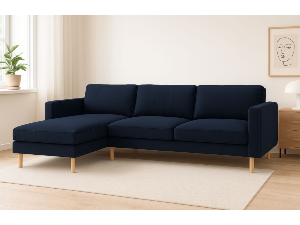 Podívám seTmavě modrá sametová rohová pohovka Eden 267 cm, levá