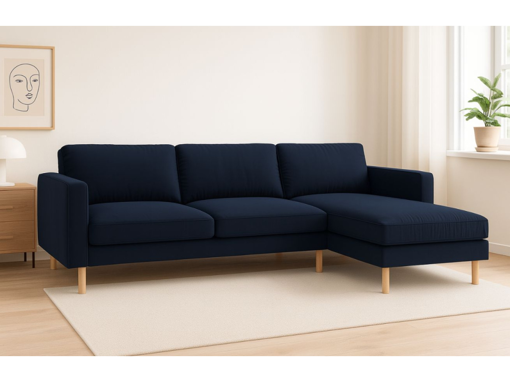 Podívám seTmavě modrá sametová rohová pohovka Eden 267 cm, pravá