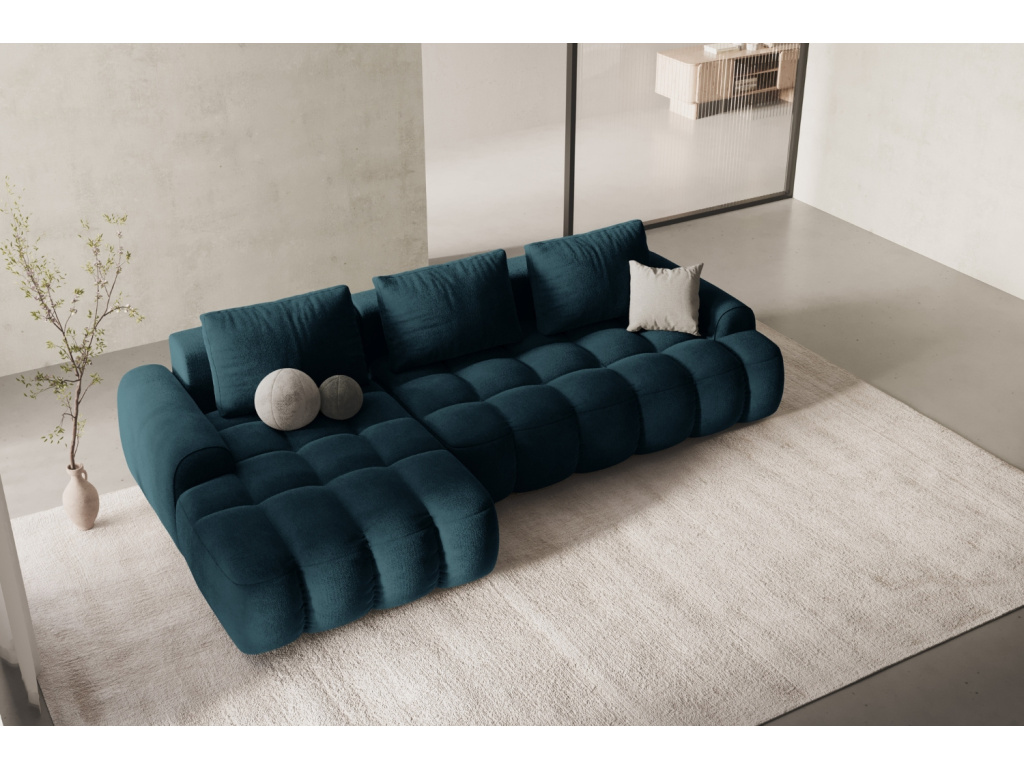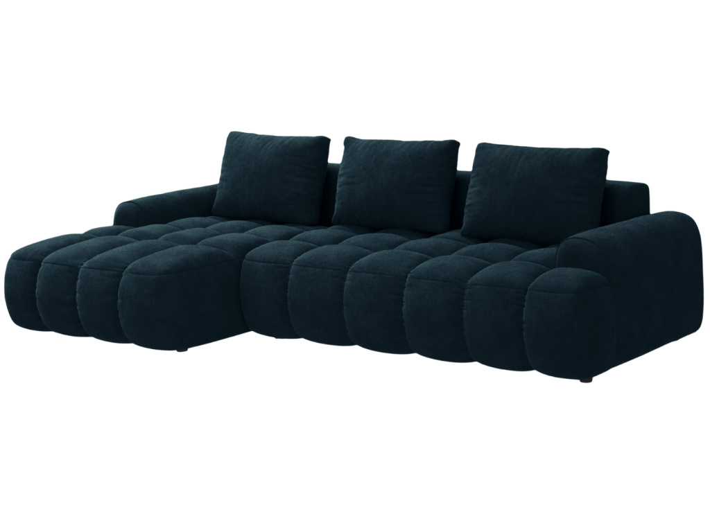 Podívám seTmavě modrá sametová rozkládací pohovka Linz 275 cm, levá