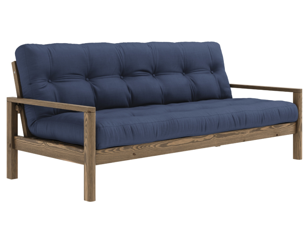 Pohovka nebo postel? Trojmístná rozkládací pohovka Knob od dánské značky Karup Design umí být obojím! Pod dřevěnými područkami se nachází dva nenápadné úchyty, které lze snadno odšroubovat a vy tak během chvilky získáte pohodlné lůžko pro vás nebo vaše hosty. Konstrukce z masivního borovicového dřeva s FSC certifikací je doplněna kvalitní 14cm futonovou matraci, která v sobě kombinuje recyklovaná vlákna a 4 cm pěny. Pohovka Knob fantasticky zapadne do skandinávských a japonských stylů interiérů, do kterých vnese jednoduchost, eleganci a ryzí funkčnost. Představuje skvělé řešení zejména pro menší prostory, do kterých přinese další místo na spaní. Vybrat si ji můžete v další barvě konstrukce či v mnoha barvách matrací.