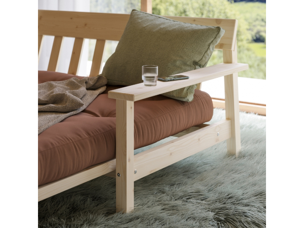 Pozn.: Futonová matrace je vyrobená z přírodních materiálů, a je proto potřeba o ni pečovat. Protože absorbuje velké množství vlhkosti, nezapomínejte ji pravidelně větrat. Aby nedocházelo ke vzniku skvrn, čistěte ji pouze suchým hadříkem. V případě používání pohovky jako lůžka doporučujeme používat prostěradlo.