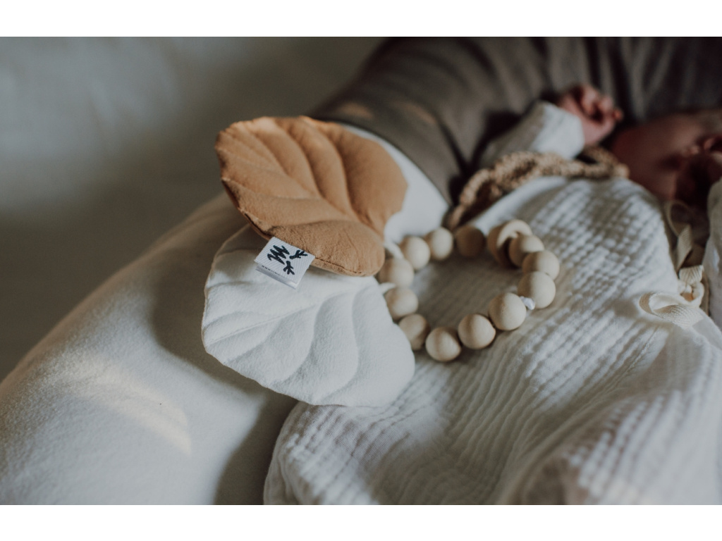Kousátko Leaves od Malomi Kids je ideálním doplňkem, když dětem začínají růst zoubky. Je ozdobené bavlněnými lístky, které díky šustivé výplni miminko zabaví, a budou skvělým pomocníkem při rozvíjení motorických dovedností děťátka. Dřevěné kousátko je vyrobené z borovicového dřeva a není lakované ani impregnované.