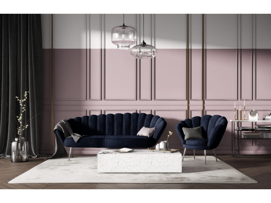 Křeslo Kingston značky Cosmopolitan Design představuje spojení elegance a neotřelého vzhledu. Jeho jemně lesklé sametové čalounění v tmavě modrém odstínu je hebké a příjemné na dotek. Tkanina je velmi odolná proti oděru a absorpci tekutin, čímž zaručí dlouhodobé používání bez známek opotřebení. Celkový design křesla doplňuje stříbrná kovová podnož. Pro dokonale sladěný sedací kout doporučujeme křeslo doplnit o pohovku ze stejnojmenné série. Všechny produkty nabízíme v sedmi barevných provedeních. Užijte si pohodlí a styl v jednom!