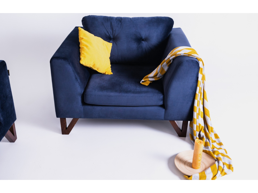 Podívám seTmavě modré sametové křeslo Sonny