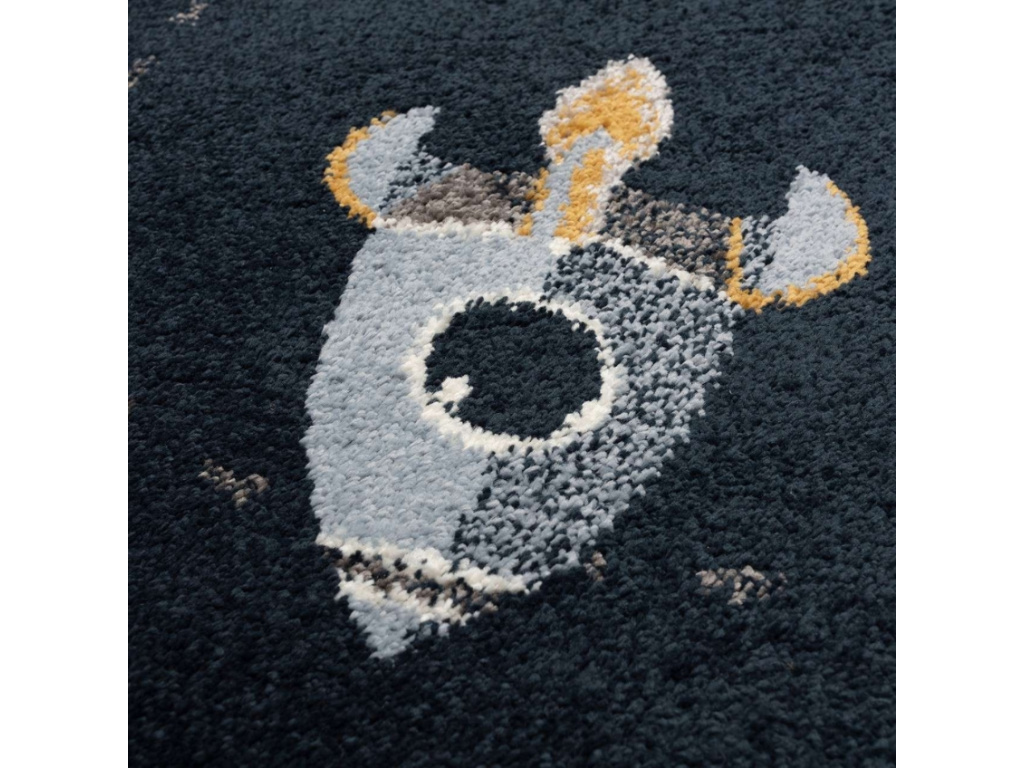 Koberec Fast Rockets s motivem létajících raket mezi hvězdičkami poskytne zázemí na hraní nebo čtení pohádek. Na dotyk měkký a hebký materiál příjemně hřeje a poskytne pohodlí. Koberec se snadno čistí a díky polypropylenové přízi má antialergenní a antistatické vlastnosti. Originální design s vesmírným motivem a kontrastními barvami potěší zejména malé raubíře, a skvěle tak zapadne do chlapeckého pokoje.