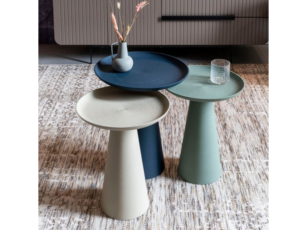 Odkládací stolek WLL RINGAR je nejen velice praktický, ale také stylový. Můžete ho mít ve dvou velikostech a ve čtyřech různých barvách. Jeho deska i podnož jsou vyrobeny z kvalitního hliníku lakovaného tmavě modrou barvou. Stolek se skvěle hodí do obývacího pokoje nebo do předsíně, kde poslouží například k odkládání klíčů.