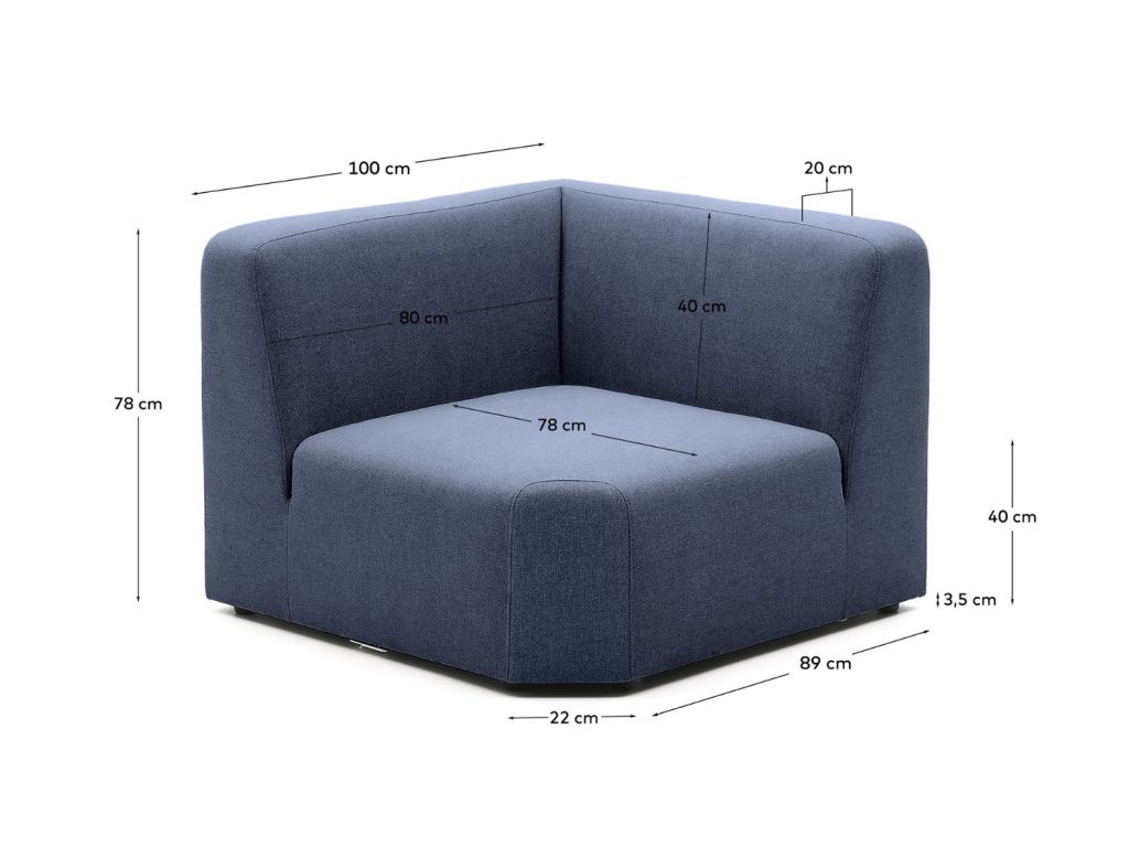 Modul Kave Home Neom pochází z modulární série, díky které si můžete vytvořit ve vašem obývacím pokoji sezení podle vašich představ. Můžete ho doplnit podnožkou, lenoškou nebo jich seskládat více stejných modulů k sobě a vytvořit tak sezení přesně na míru vašemu interiéru a vašim potřebám. A když vás přestane současné rozmístění bavit, můžete vzniklé sezení kdykoliv zase přeskládat! Modul je čalouněný kvalitní látkou v tmavě modrém odstínu, která díky vysokému martindale může být bez problémů využita nejen v domácnostech, ale také v komerčních prostorech. Celá série je dostupná také v béžovém provedení.