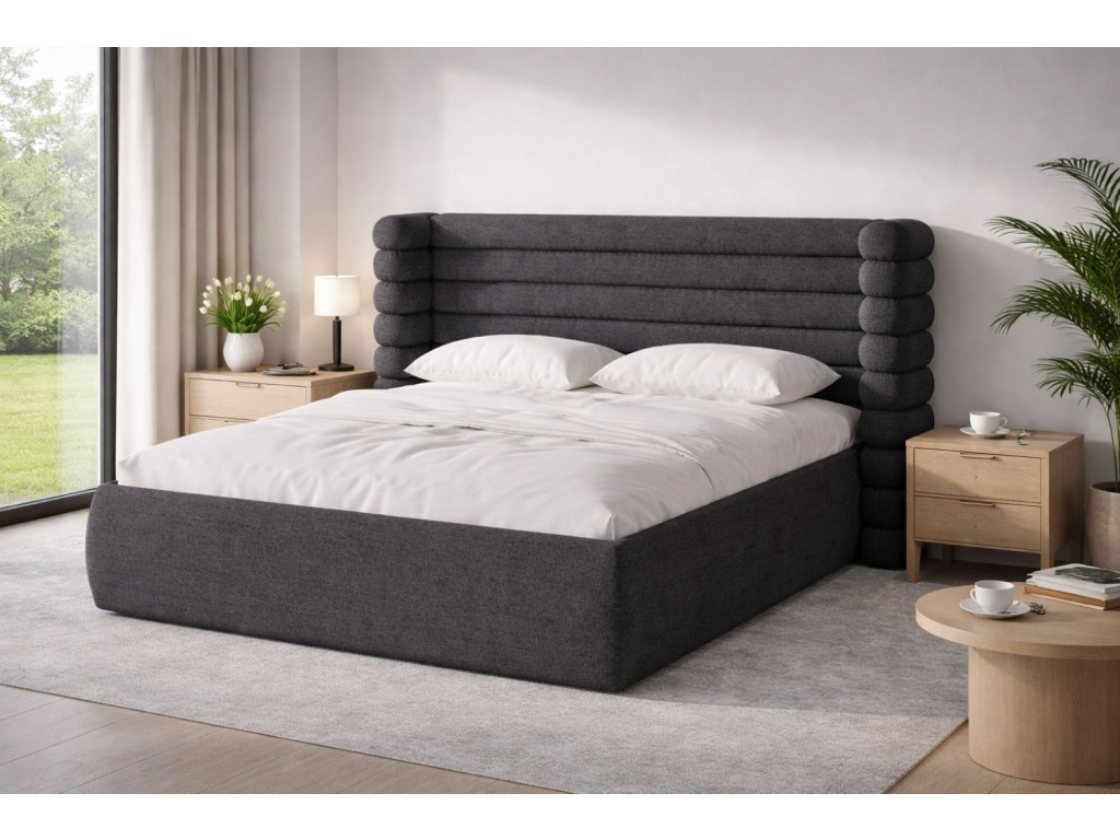 Postel Mount je výrazným designovým prvkem, který v ložnici okamžitě vytvoří pocit útulnosti a klidu. Její ikonické čelo s měkkým, plastickým tvarováním připomíná vrstvy jemné pěny a v kombinaci s bouclé látkou působí hřejivě a příjemně. Tvarovaná opěrka hlavy s bočními „křídly“ dodává posteli charakter a zároveň vytváří pocit většího soukromí. Čalounění z látky Coral zaujme bohatou strukturou, jemným leskem a hebkým povrchem, který je příjemný na dotek i vhodný pro každodenní používání. Pod matrací se nachází praktický úložný prostor, do kterého se snadno dostanete jednoduchým nadzvednutím roštu. Postel Mount se hodí do moderních, skandinávských i minimalistických interiérů a je dostupná v různých rozměrech, barevných variantách i typech látek.
