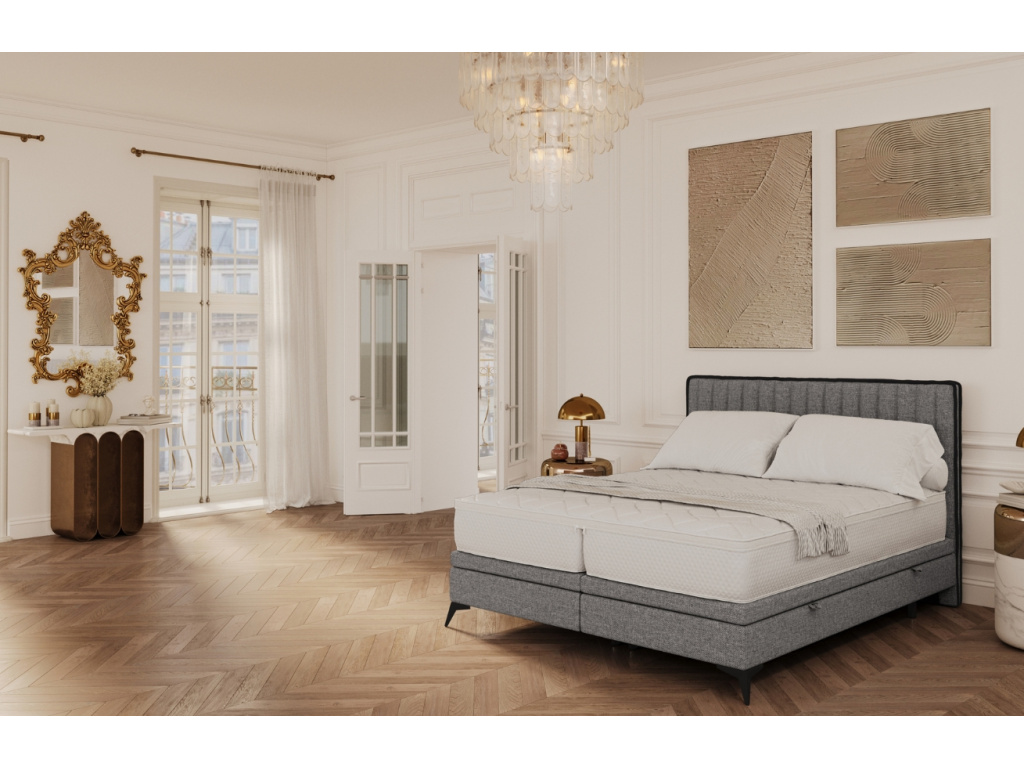 Představujeme vám ideální nadčasový prvek do vašeho interiéru – čalouněnou dvoulůžkovou postel ADRON. Tento model zaujme na první pohled svým elegantním designem, který kombinuje vertikální prošívání s jemnými černými detaily na čele postele. Žinylková tkanina je nejen krásná, ale také neuvěřitelně příjemná na dotek a vysoce odolná proti oděru, což zaručuje dlouhou životnost. Díky praktickému úložnému prostoru s bočním otevíráním máte možnost využít místo pro uložení sezónních věcí či ložního prádla. Protiskluzová úprava základní matrace zajistí, že svrchní matrace zůstane vždy na svém místě.