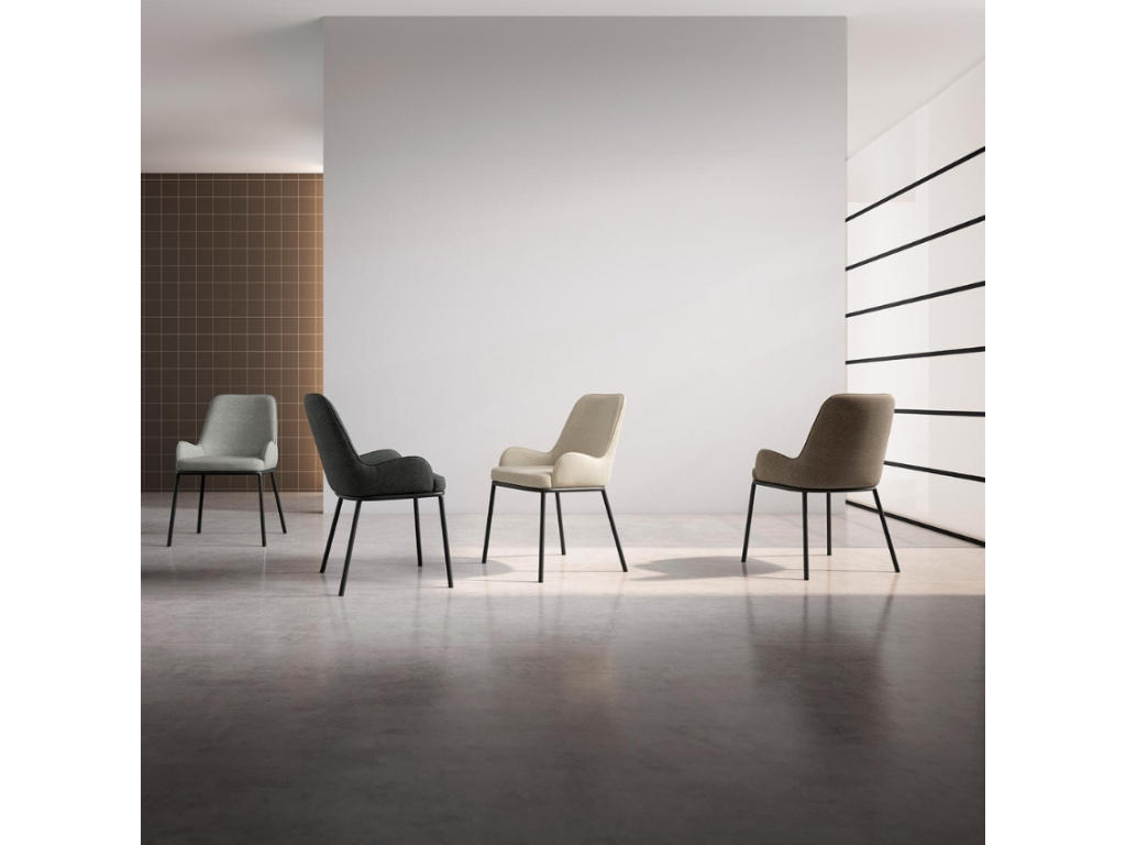 Jídelní židle Larisa od španělské značky Somcasa zapadne do každé moderní domácnosti. Larisa zajistí pohodlné sezení díky tvarovaným opěrkám a měkkému čalounění, které jí dodává patřičnou eleganci. Vysoká štíhlá podnož je vyrobena z lakovaného kovu a dokonale kontrastuje s oblými křivkami židle. Židle Larisa bude stylovým společníkem k jídelnímu stolu, ale stejně tak jí to bude slušet u toaletního stolku nebo například ve vaší pracovně.