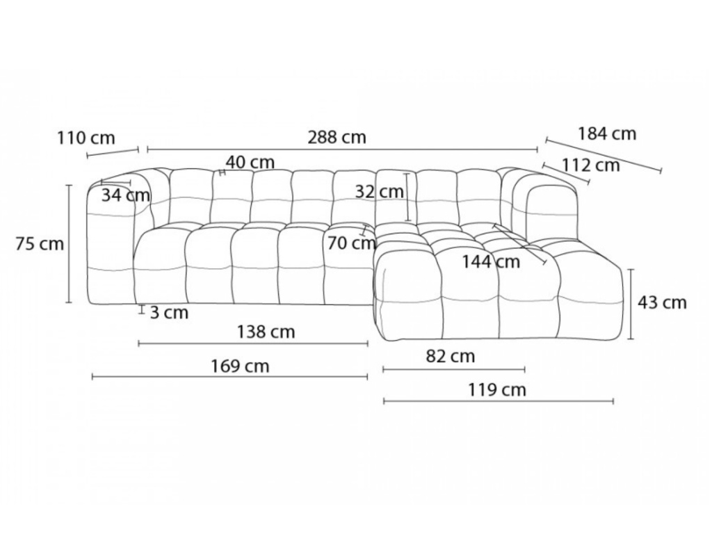 | Rozpětí pohovky: | od 251 cm |