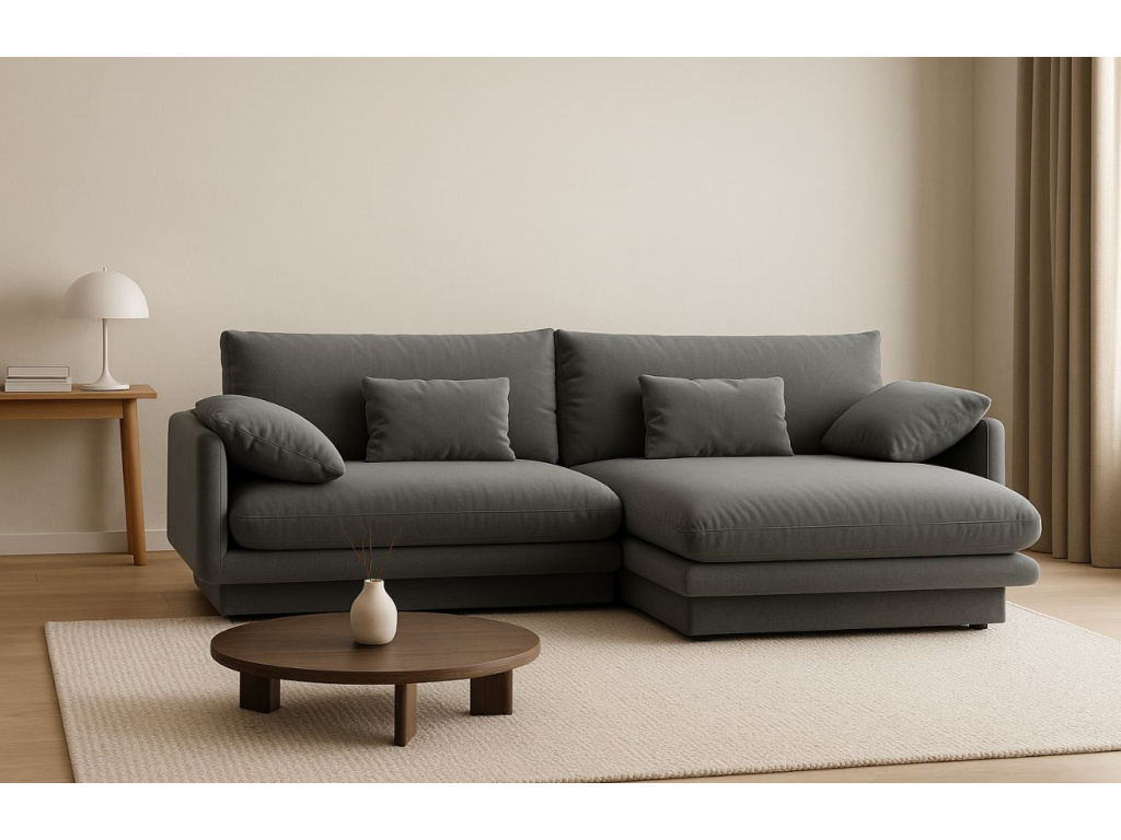 Rohová čtyřmístná pohovka Torino je elegantní a pohodlná volba pro každodenní relaxaci. Její nadčasový design spojuje klasickou siluetu s moderními proporcemi a měkkými liniemi. Výrazným prvkem jsou polstrované pohyblivé područky, které zajišťují variabilní pohodlí a spolu s extra měkkými polštáři vytvářejí příjemné zázemí pro odpočinek. Sedák s vysoce elastickou pěnou a vlnovými pružinami poskytuje stabilní oporu i dlouhodobé pohodlí. Povrch pohovky tvoří luxusní látka Wind, která je hebká na dotek, jemně lesklá a proměnlivá podle dopadu světla. Je nejen vizuálně atraktivní, ale i velmi odolná a snadno udržovatelná, takže zvládne i náročný provoz domácnosti. Kolekce Torino se skvěle hodí do moderních, skandinávských i urban interiérů. Doplnit ji můžete o ladící konferenční stolek, měkké polštáře, hřejivý pléd nebo elegantní vázu s květinami.