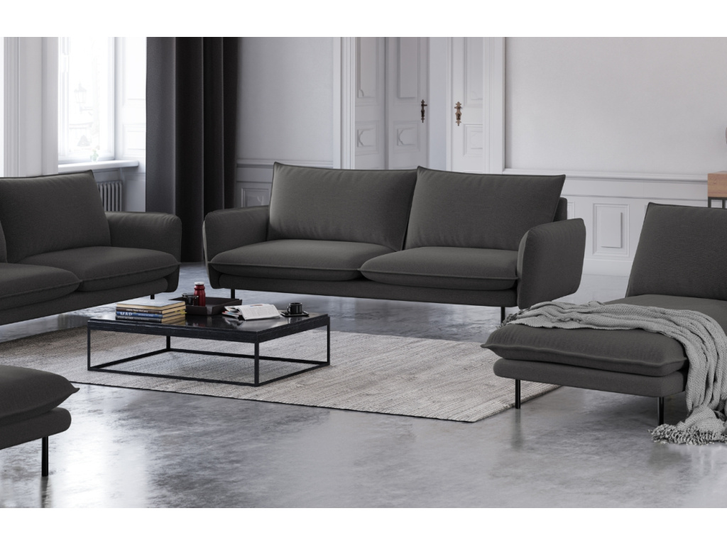 Pohovka Vienna od Cosmopolitan Design je poctou nadčasové eleganci, smyslu pro detail a dokonale vyváženým proporcím. Jemně tvarované opěrky, měkké polštáře a ladná silueta jí propůjčují lehkost, která zaujme na první pohled. Kontrastní černě lakovaná kovová podnož dodává celku vizuální vzdušnost a současně zajišťuje stabilitu. O vaše maximální pohodlí se postará čalounění ze strukturované látky s výraznou texturou – příjemnou na dotek, vizuálně zajímavou a zároveň mimořádně odolnou vůči každodennímu používání. Vienna vždy zapadne s lehkostí a zároveň dodá prostoru výraz. A protože každý domov má jiné potřeby, kolekce Vienna je k dispozici v několika velikostech – od kompaktních modelů ideálních do menších bytů až po velkorysé pohovky, na které se vejde celá rodina i s chlupatým parťákem.