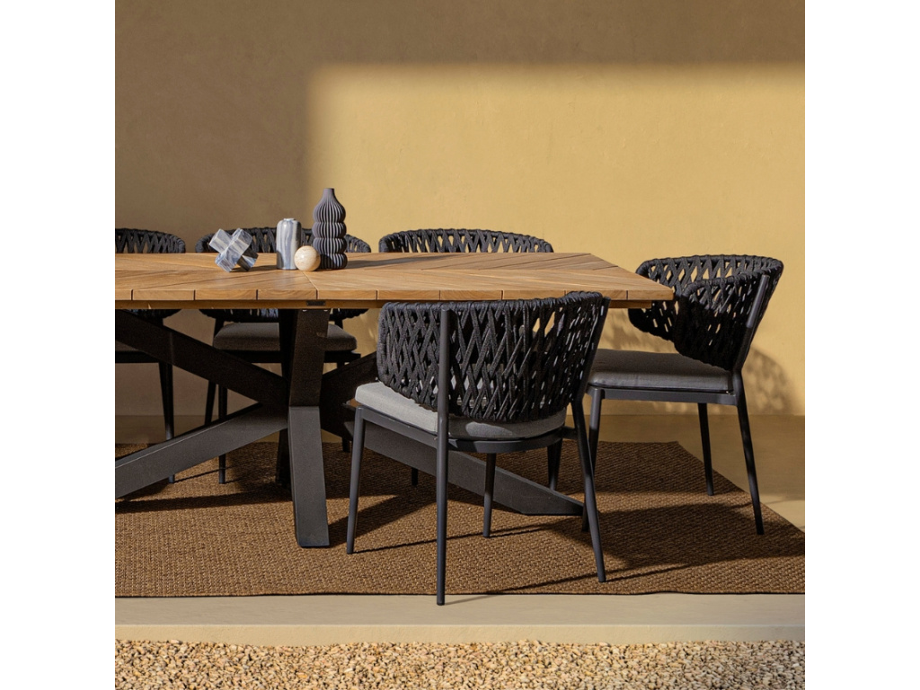 Hledáte praktickou a zároveň designovou jídelní židli na zahradu či terasu, která odolá venkovním podmínkám? Stylová zahradní židle Noelia od italské značky Bizzotto kombinuje zajímavý design a kvalitní materiály. Hliníková konstrukce židle a výplet z tetoronového lana, který zdobí opěradlo, jsou připraveny odolat venkovním vlivům. Pohodlný podsedák z akrylové látky můžete snadno odejmout, což oceníte zejména při údržbě. Díky praktickému designu jsou židle jednoduše stohovatelné. Můžete se tak připravit na početné návštěvy, aniž by vám uskladnění židlí zabralo mnoho místa. Židli nabízíme ve dvou atraktivních barvách.