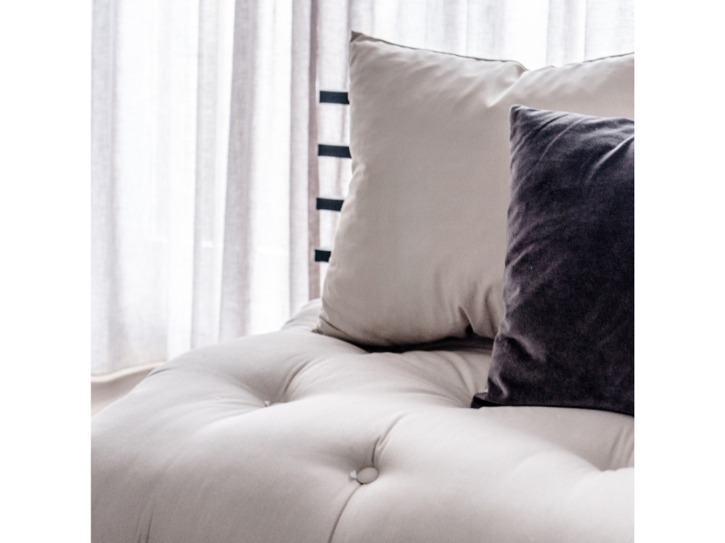 Pozn.: Futonová matrace je vyrobená z přírodních materiálů, a je proto potřeba o ni pečovat. Protože absorbuje velké množství vlhkosti, nezapomínejte ji pravidelně větrat. Aby nedocházelo ke vzniku skvrn, čistěte ji pouze suchým hadříkem. V případě používání pohovky jako lůžka doporučujeme používat prostěradlo.
