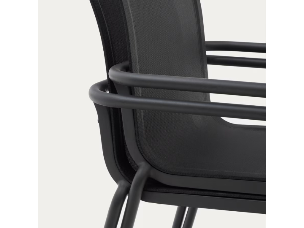 Hliníková zahradní židle Galdana od značky Kave Home vám na zahradě či terase pomůže vytvořit dokonalé místo pro posezení s přáteli či vytoužený odpočinek. Její konstrukce je vyrobena z kvalitního odolného materiálu, který zaručuje dlouhou životnost a je doplněna pohodlným sedákem a opěradlem ze síťované tkaniny v elegantní tmavě šedé barvě. Židle je lehká a stohovatelná, což vám pomůže při jejím uskladnění a manipulaci. Užijte si teplé dny a večery ve stylu!