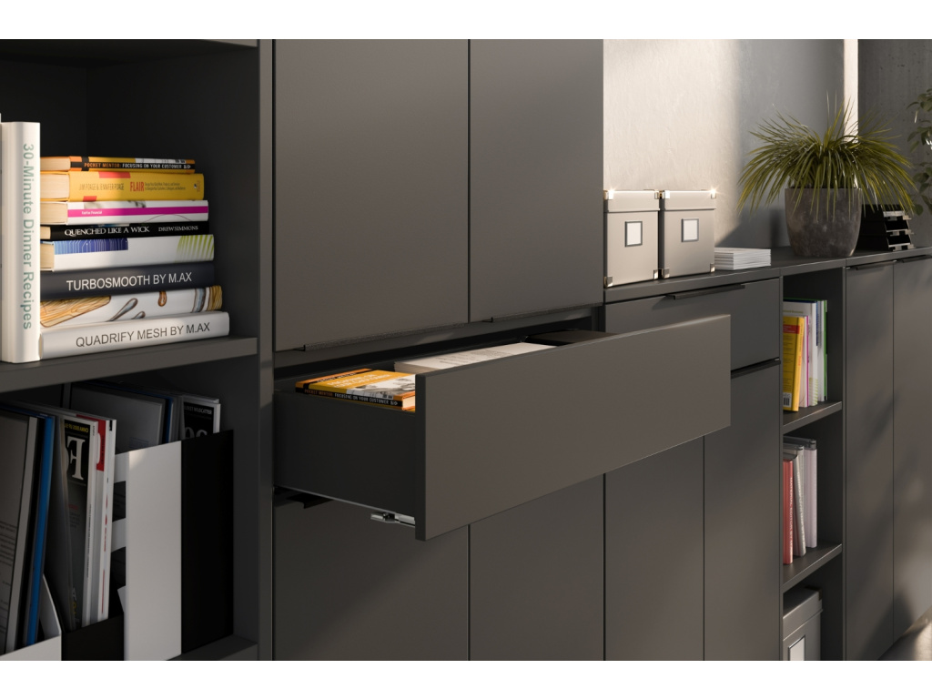 Kancelářská skříň Mailand od značky Germania je dokonalým spojením funkčnosti, estetiky a precizního zpracování. Elegantní linie, promyšlené detaily a kvalitní materiály z ní dělají kus nábytku, který nejen uspořádá váš pracovní prostor, ale i pozvedne jeho styl. Povrchová úprava z melaminové pryskyřice chrání korpus před poškrábáním a vlhkostí, zatímco kvalitní ABS hrany zaručují, že si skříň zachová svůj vzhled po dlouhá léta. Dvířka s tlumeným dovíráním se zavírají tiše a hladce, takže i běžné používání působí prémiově. Za minimalistickým designem se skrývá promyšleně uspořádaný úložný prostor s výškově nastavitelnými policemi, který nabízí dostatek místa pro šanony, dokumenty i kancelářské doplňky. Praktická zásuvka vybavená funkcí push-to-open pak umožňuje mít drobnosti vždy po ruce a zároveň elegantně skryté. Díky dvěma elegantním barevným variantám si můžete zvolit provedení, které nejlépe vystihne atmosféru vašeho pracovního prostoru. Mailand tak spojuje praktičnost s elegancí a vytváří prostředí, ve kterém se snadno pracuje i dýchá.