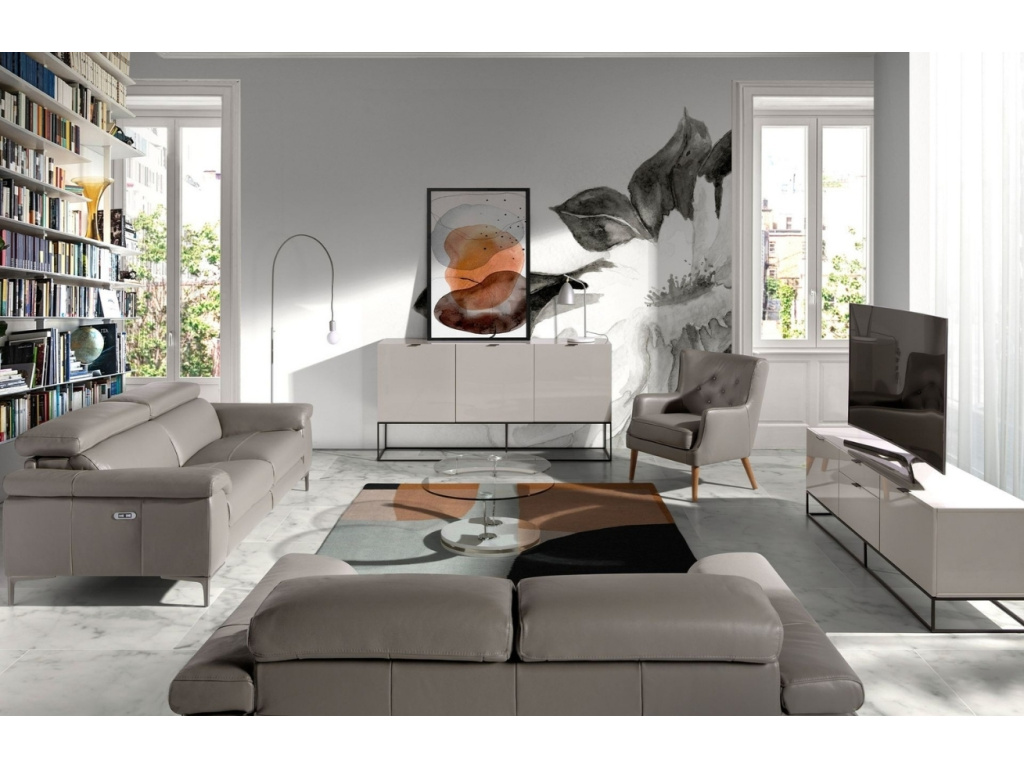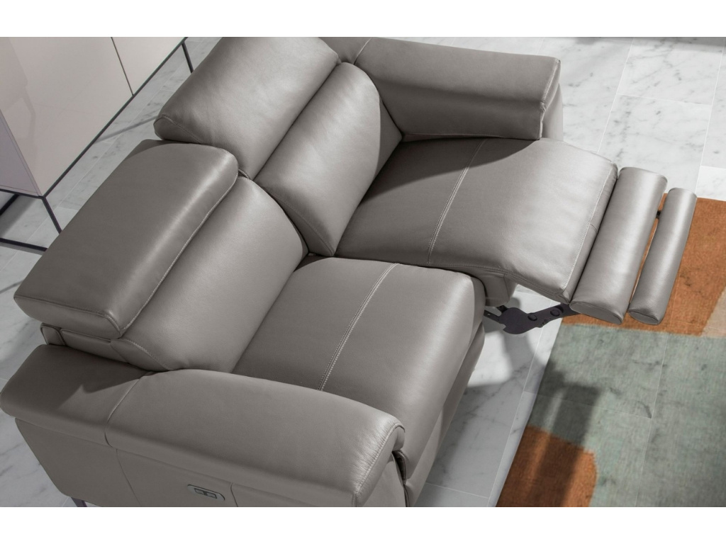 Dopřejte si pohodlí a styl s touto elegantní dvoumístnou koženou pohovkou, která bude ozdobou vašeho obývacího pokoje. Čalounění ve tmavě šedém odstínu z prémiové hovězí kůže přinese nejen luxusní vzhled, ale i výjimečnou odolnost a příjemný pocit na dotek. Díky elektrickému relaxačnímu systému snadno nastavíte ideální polohu pro odpočinek. Polohovatelné opěrky hlavy zajistí maximální komfort při čtení nebo sledování televize. Minimalistická kovová podnož dodá celému designu moderní nádech a lehkost.