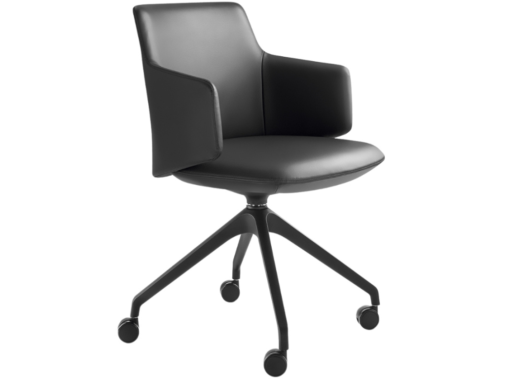 Stylová a elegantní konferenční židle MELODY MEETING vám zajistí pohodlné sezení i při delších schůzkách, poradách a pracovních školeních. Skvěle se hodí právě do konferenčních prostor a zasedacích místností, ale klidně i do odpočinkových zón. Židle je čalouněná kůží a to včetně prostorných loketních opěrek, které jsou součástí opěradla. Díky čtyřramenné podnoži s kolečky se na ní můžete snadno pohybovat po místnosti nebo ji kamkoliv přesouvat.