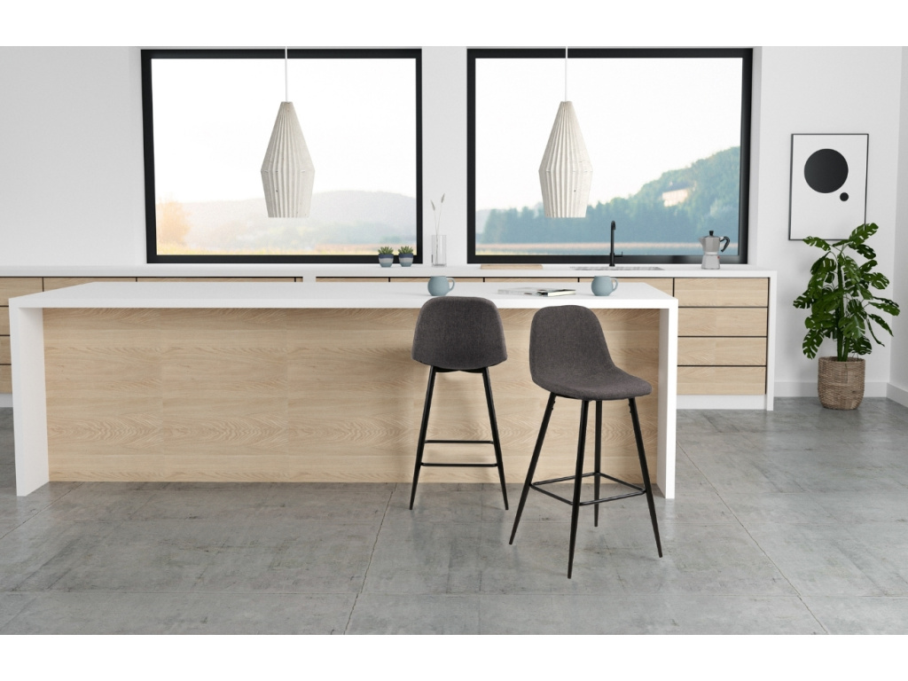 Barová židle Wanda je inspirovaná retro stylem a jistě ozvláštní každý interiér. Zakulacený a velmi příjemnou látkou čalouněný sedák tmavě šedé barvy tvoří skvělou kombinaci s černě lakovanou kovovou podnoží. Tato kombinace dodá vašemu interiéru styl a nadčasovost. Dopřejte si barové posezení a maximální komfort, ke kterému přispívá i opěrka na nohy.